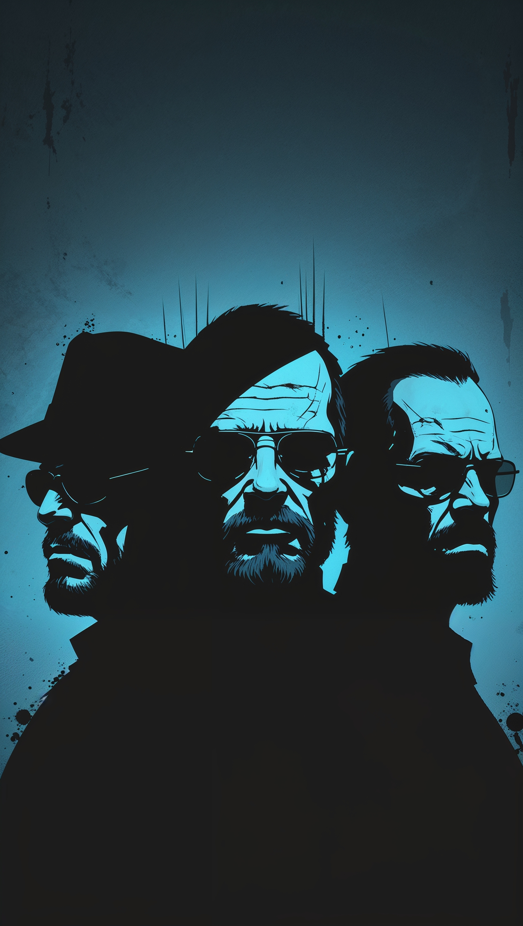 1664x2944 Design an iPhone wallpaper with dark colors and shadows of the main characters of Breaking Bad