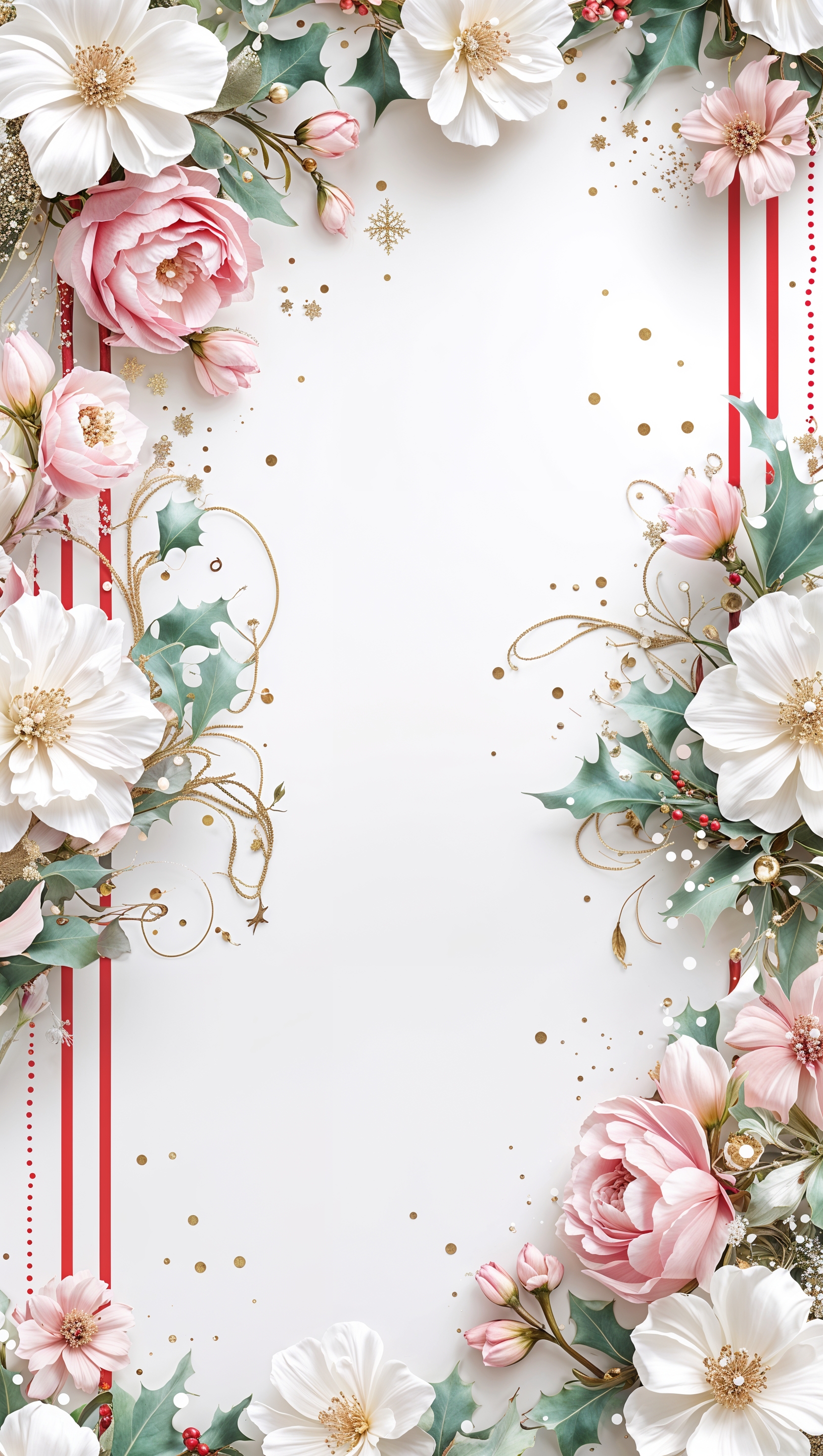 1664x2944 iPhone Christmas wallpaper with floral decorations and pastel colors