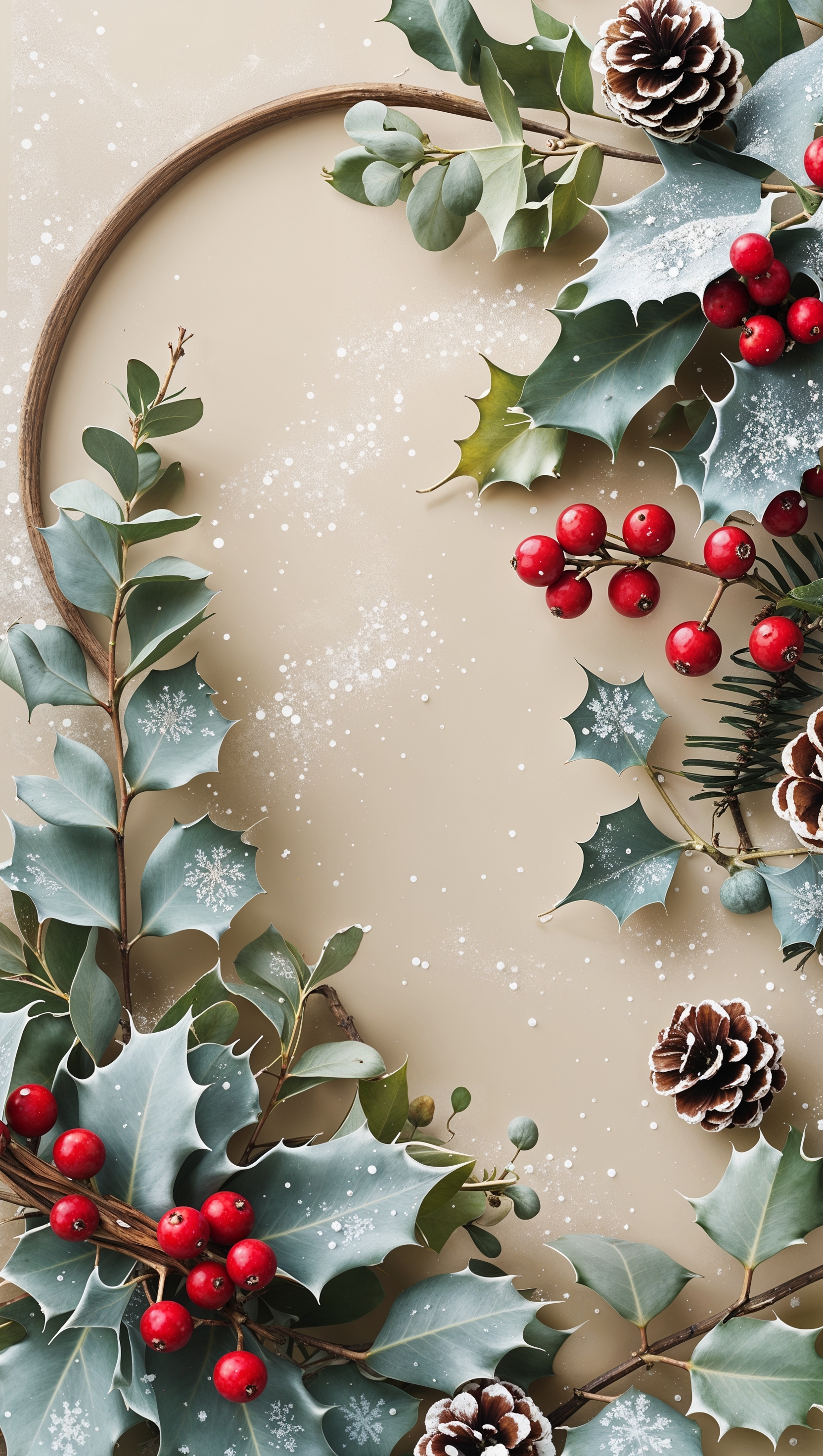 1664x2944 iPhone Christmas wallpaper with floral decorations and natural colors