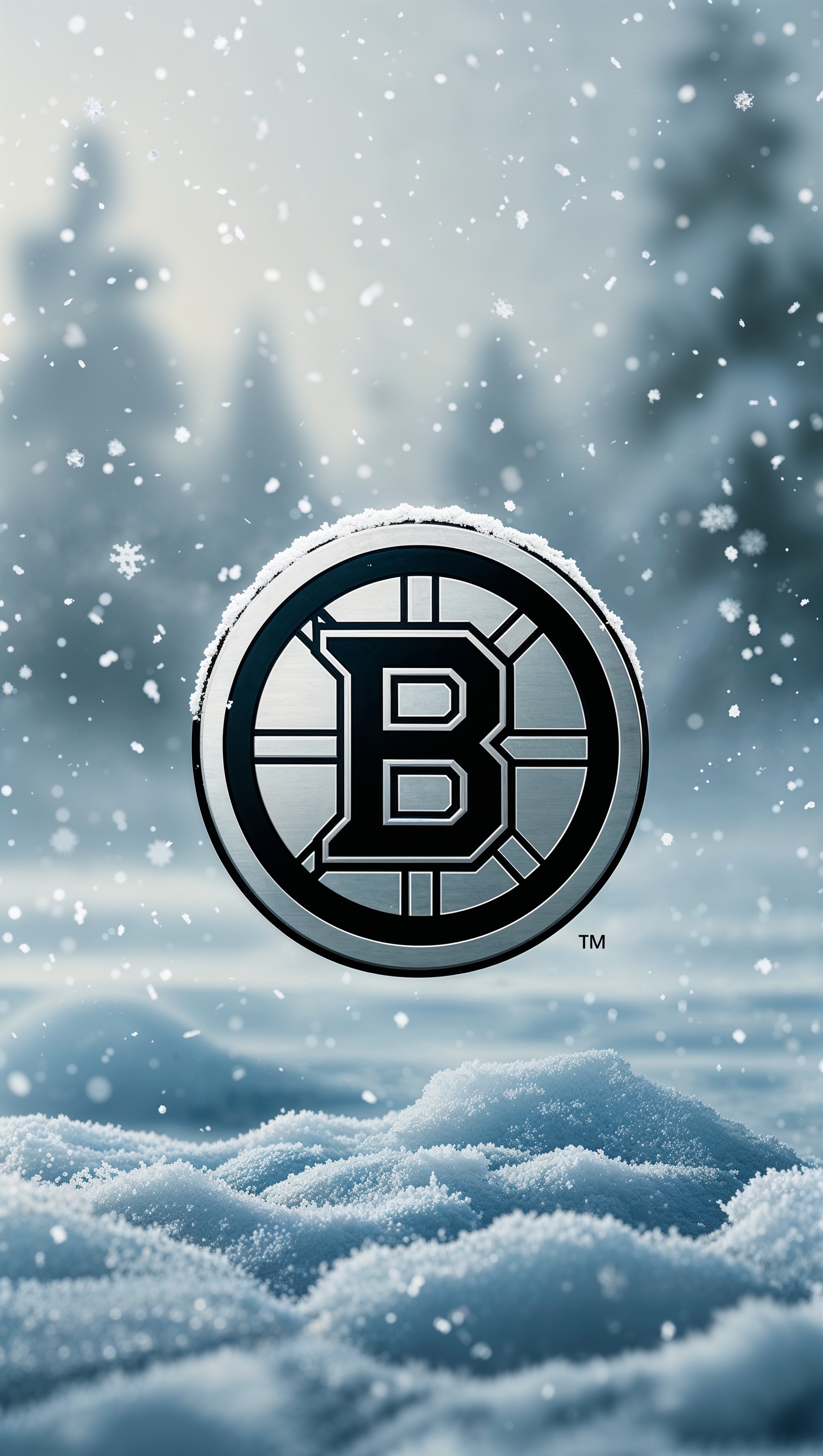1664x2944 Winter-themed iPhone wallpaper with Boston Bruins design