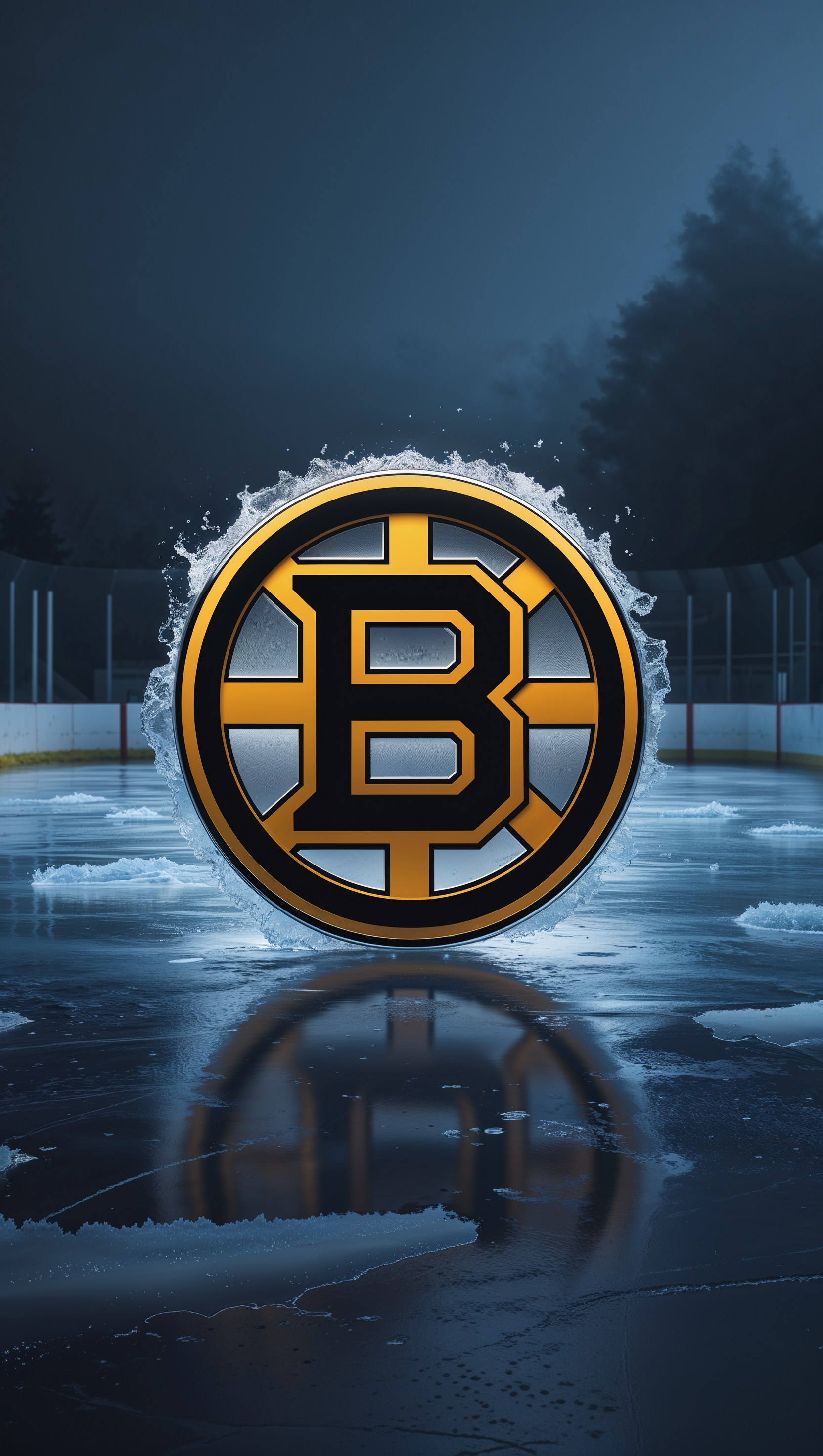 1664x2944 iPhone wallpaper featuring the iconic Boston Bruins emblem