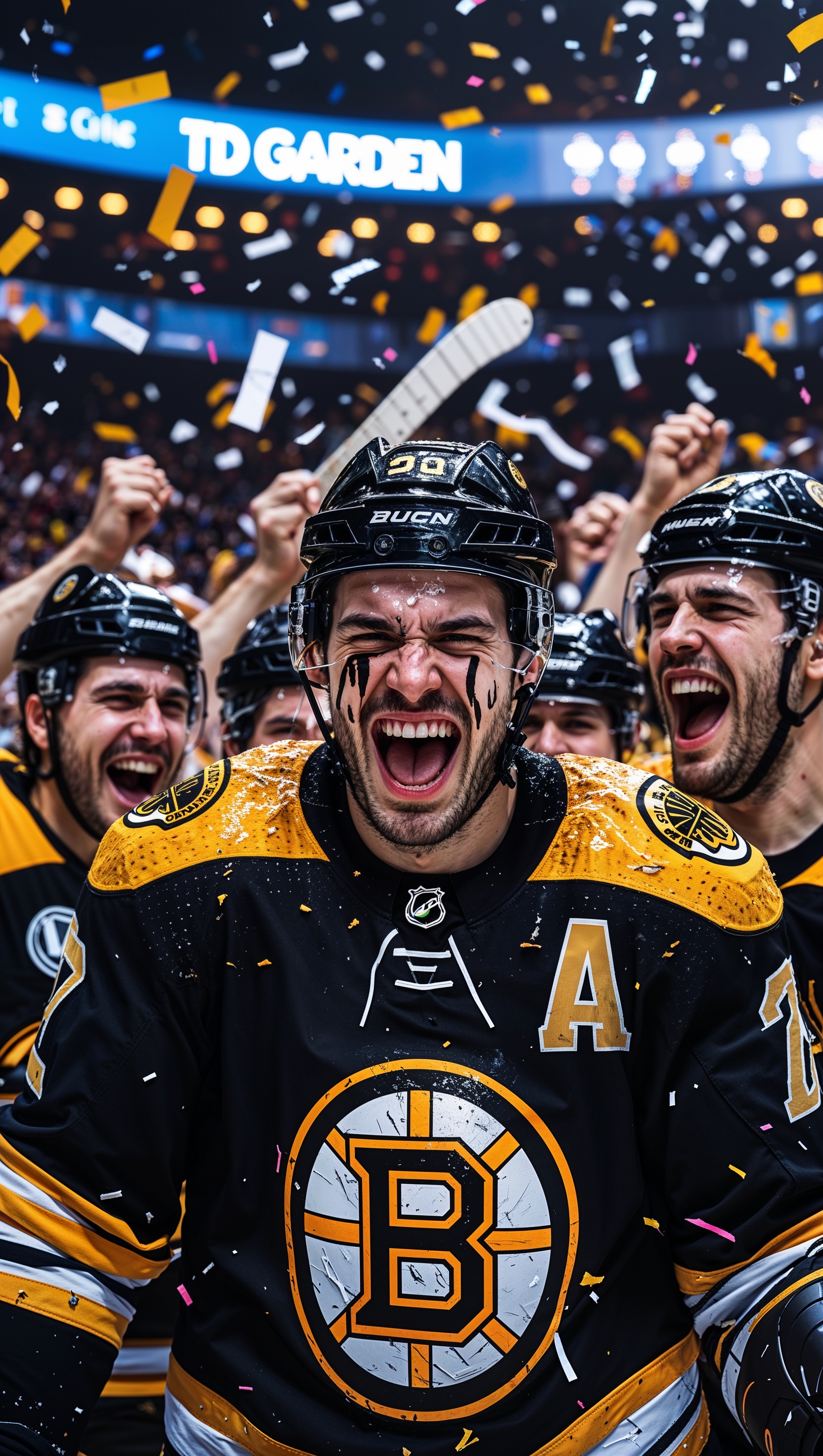 1664x2944 iPhone wallpaper showcasing a Boston Bruins victory moment