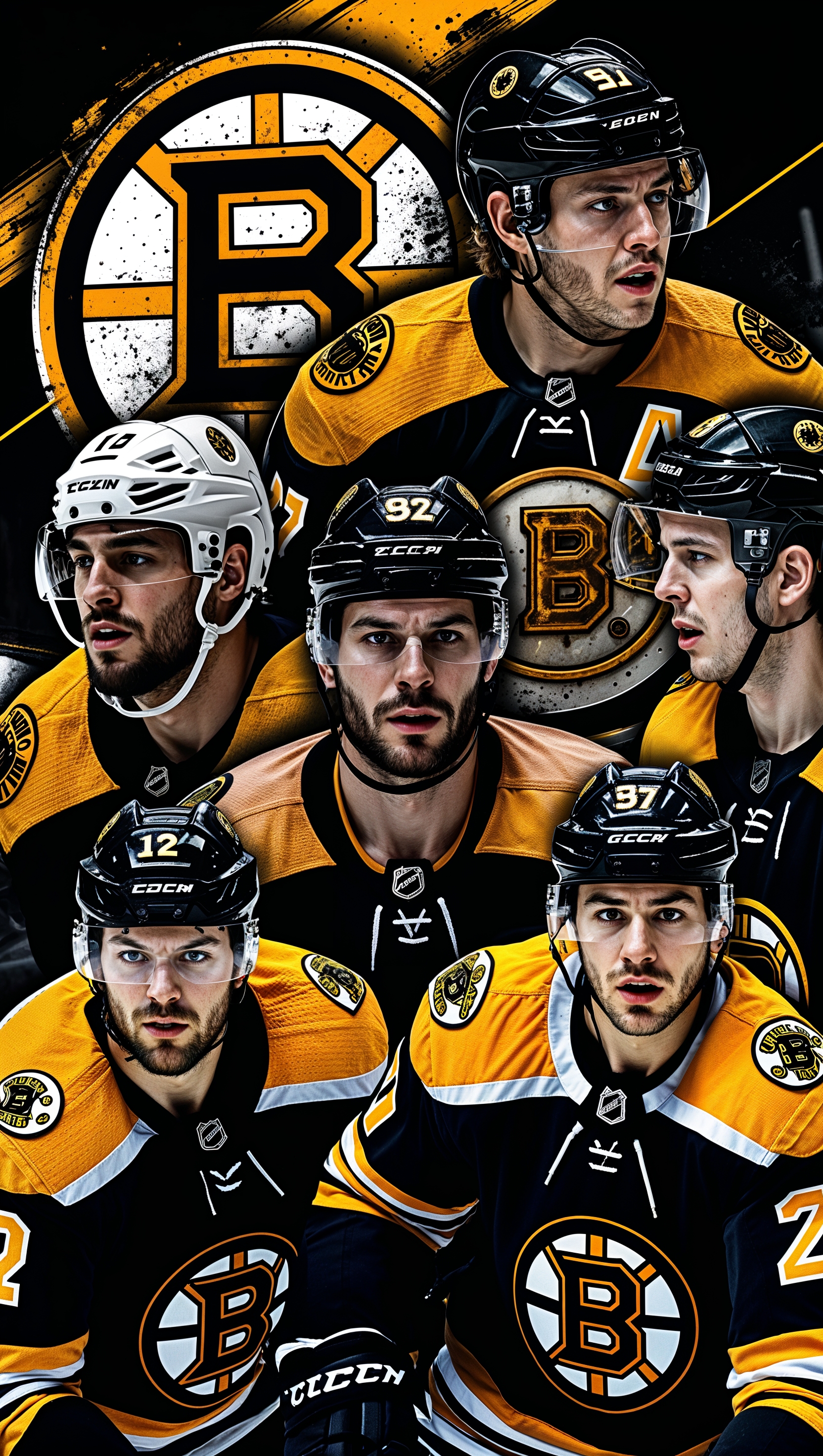 1664x2944 Boston Bruins iPhone wallpaper featuring famous players