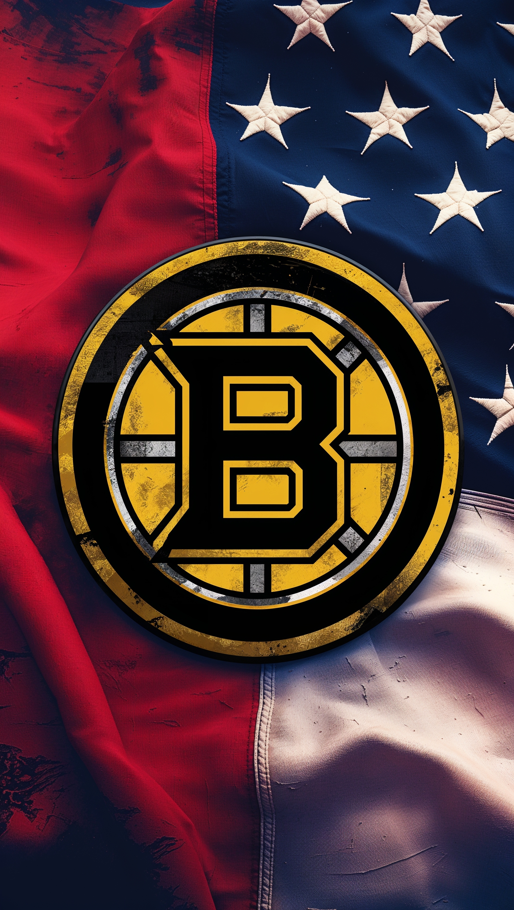 1664x2944 iPhone wallpaper combining Boston Bruins logo and American flag