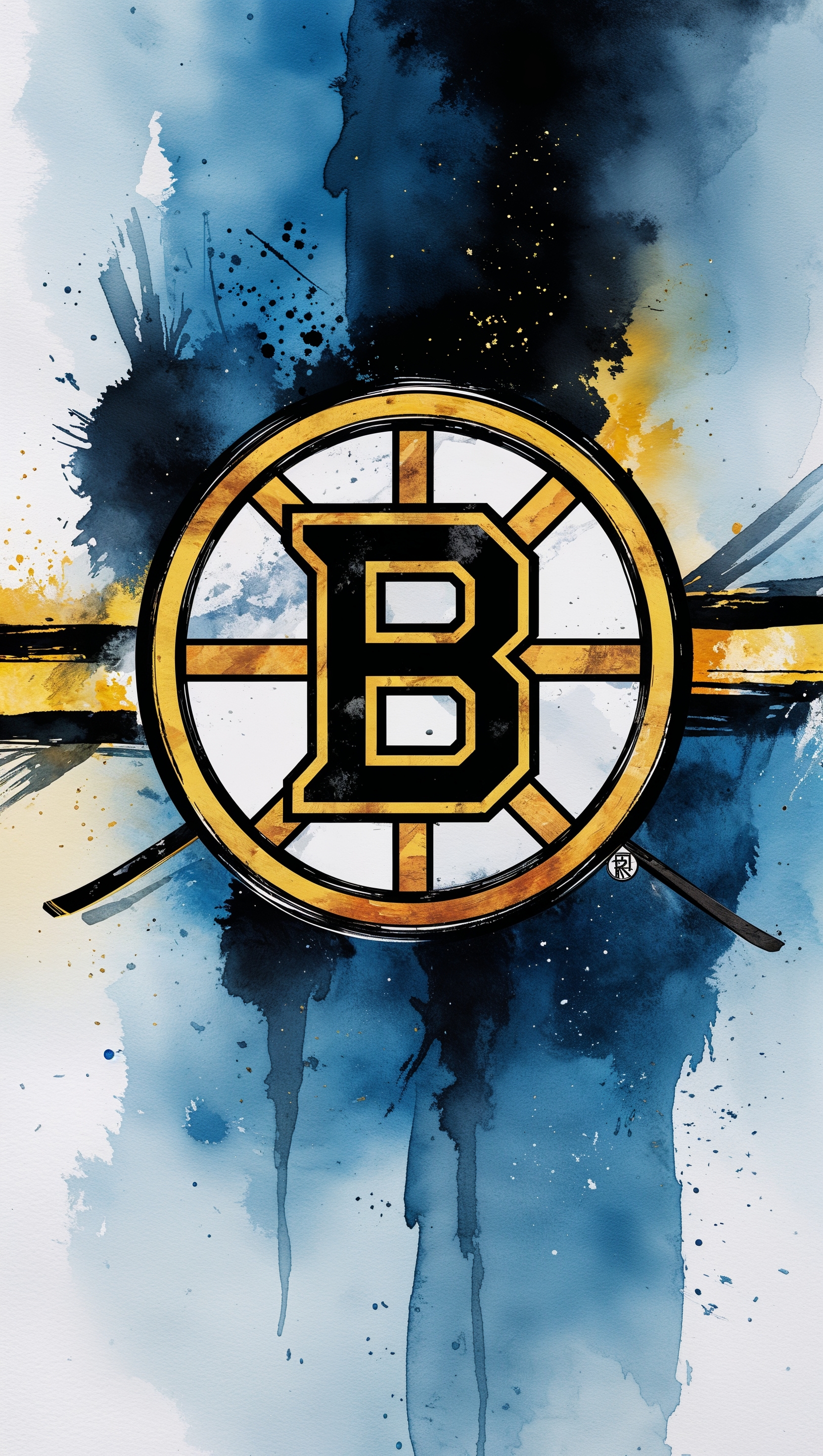 1664x2944 Boston Bruins background with watercolor effect for iPhone