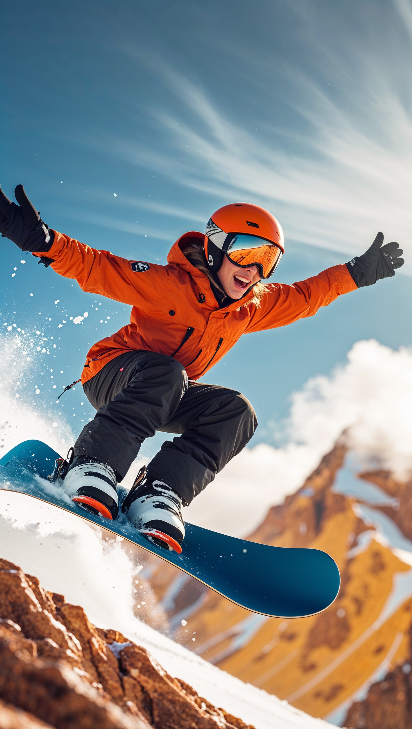 1664x2944 Snowboarder with a GoPro camera on helmet, action shot style