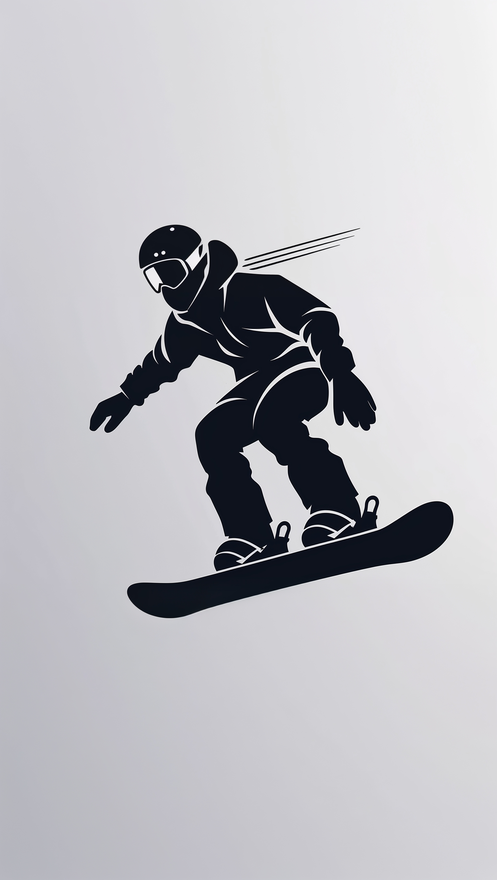 1664x2944 Minimal outline of a snowboarder in white on a black background