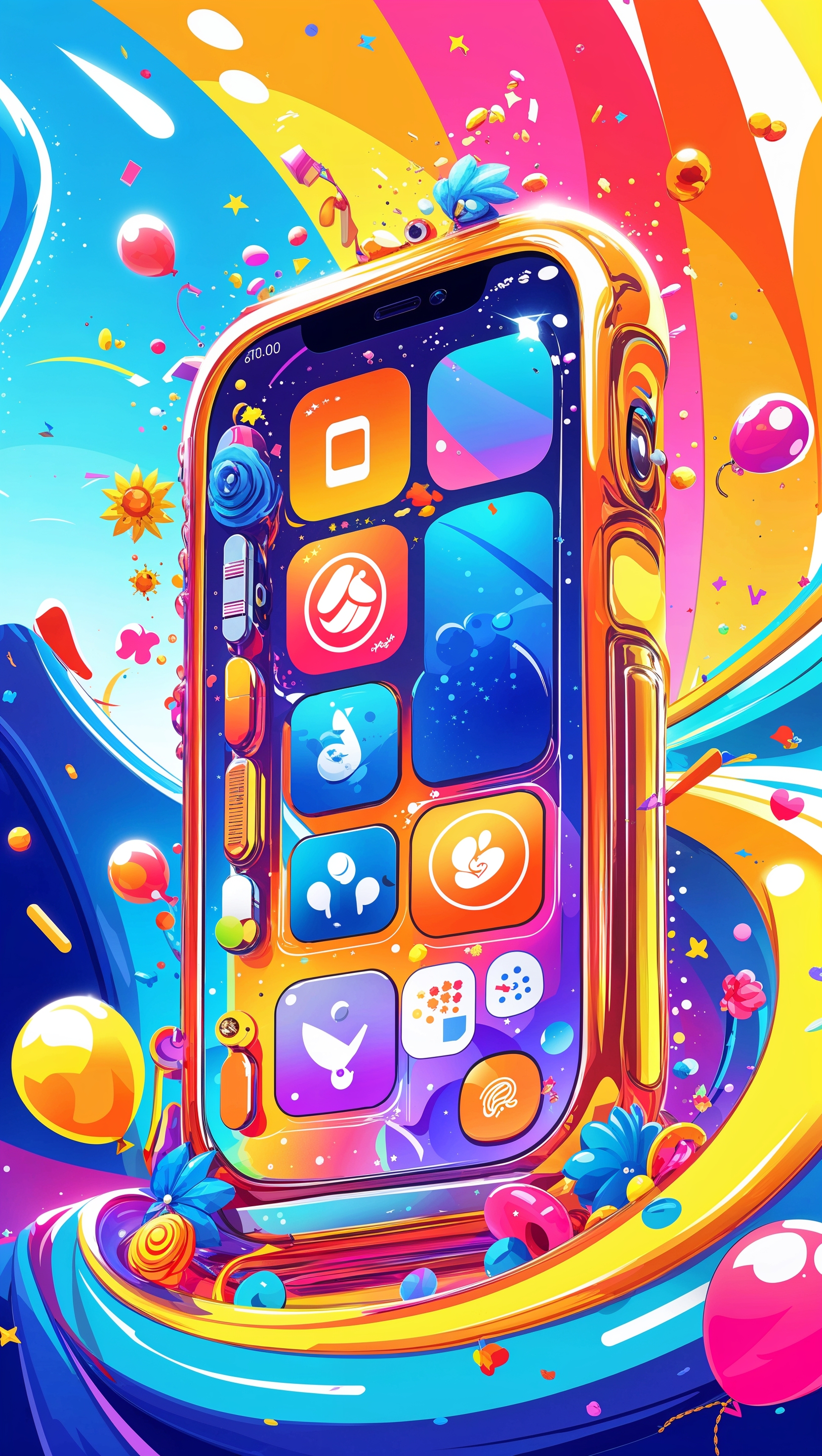 1664x2944 Cartoon-style iPhone interior design, colorful and fun