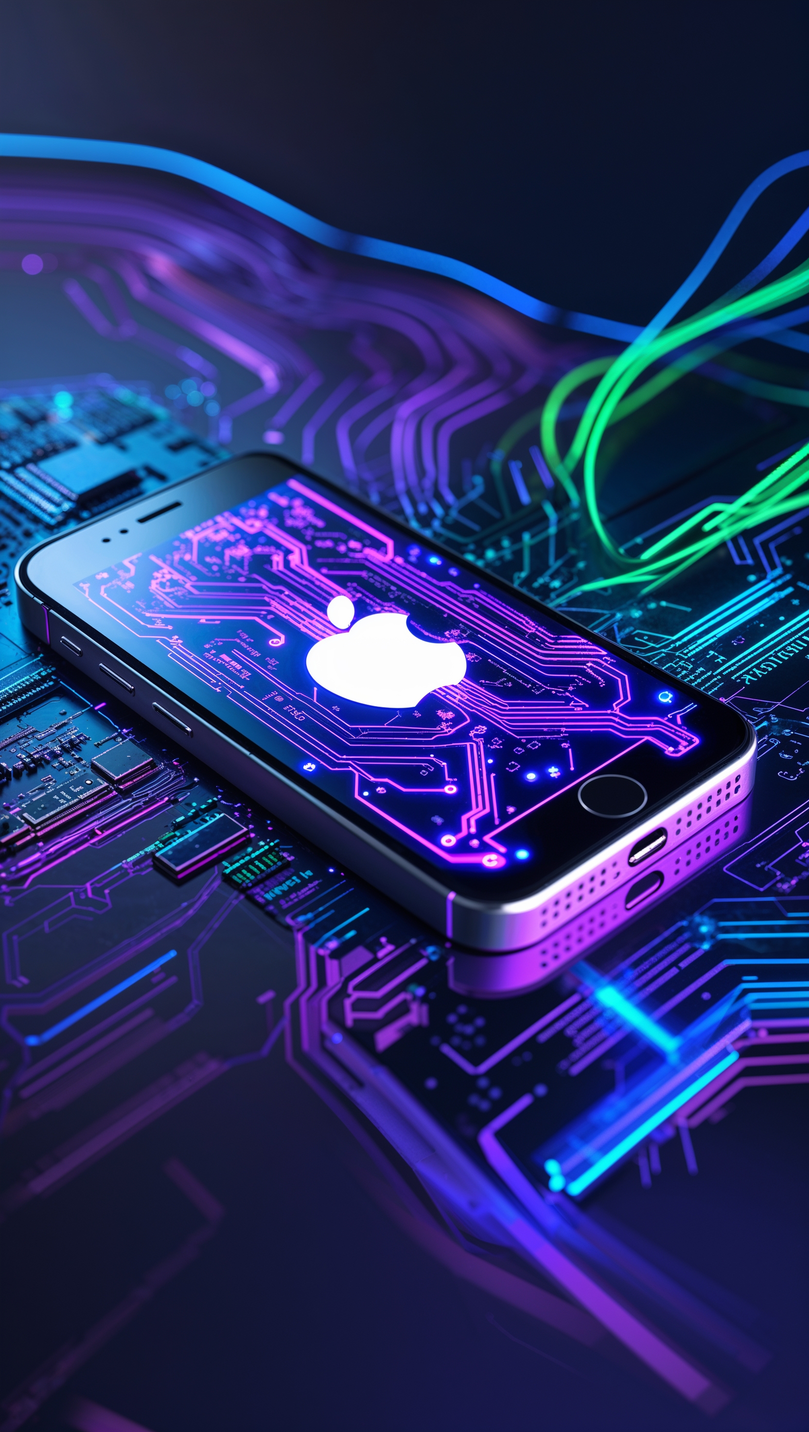 1664x2944 Glowing neon circuit board of an iPhone as a futuristic wallpaper