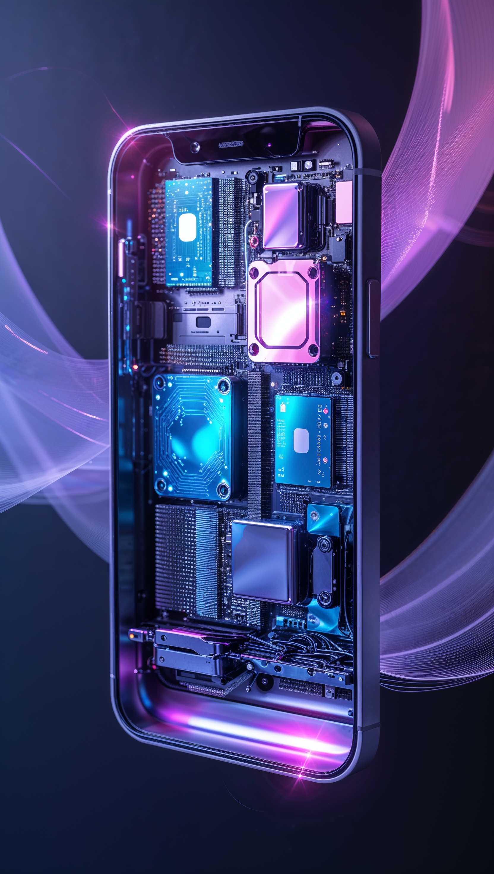 1664x2944 Artistic X-ray composite of iPhone internals with glowing effects