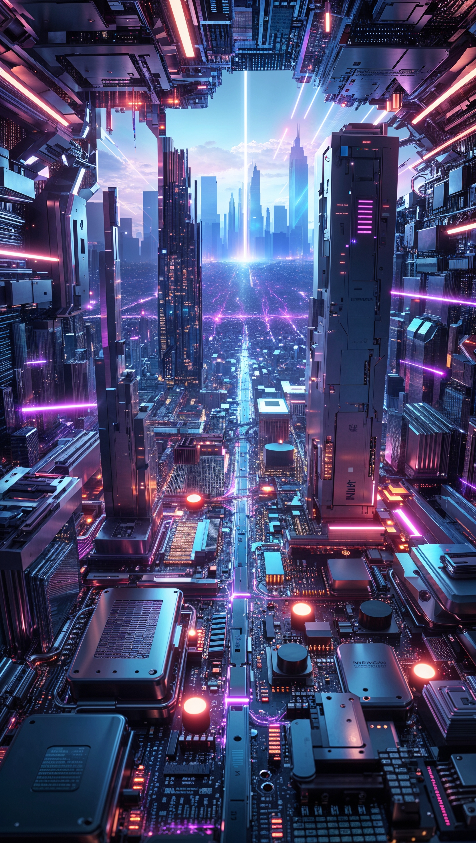 1664x2944 Transparent iPhone wallpaper showing circuits and chips in neon style