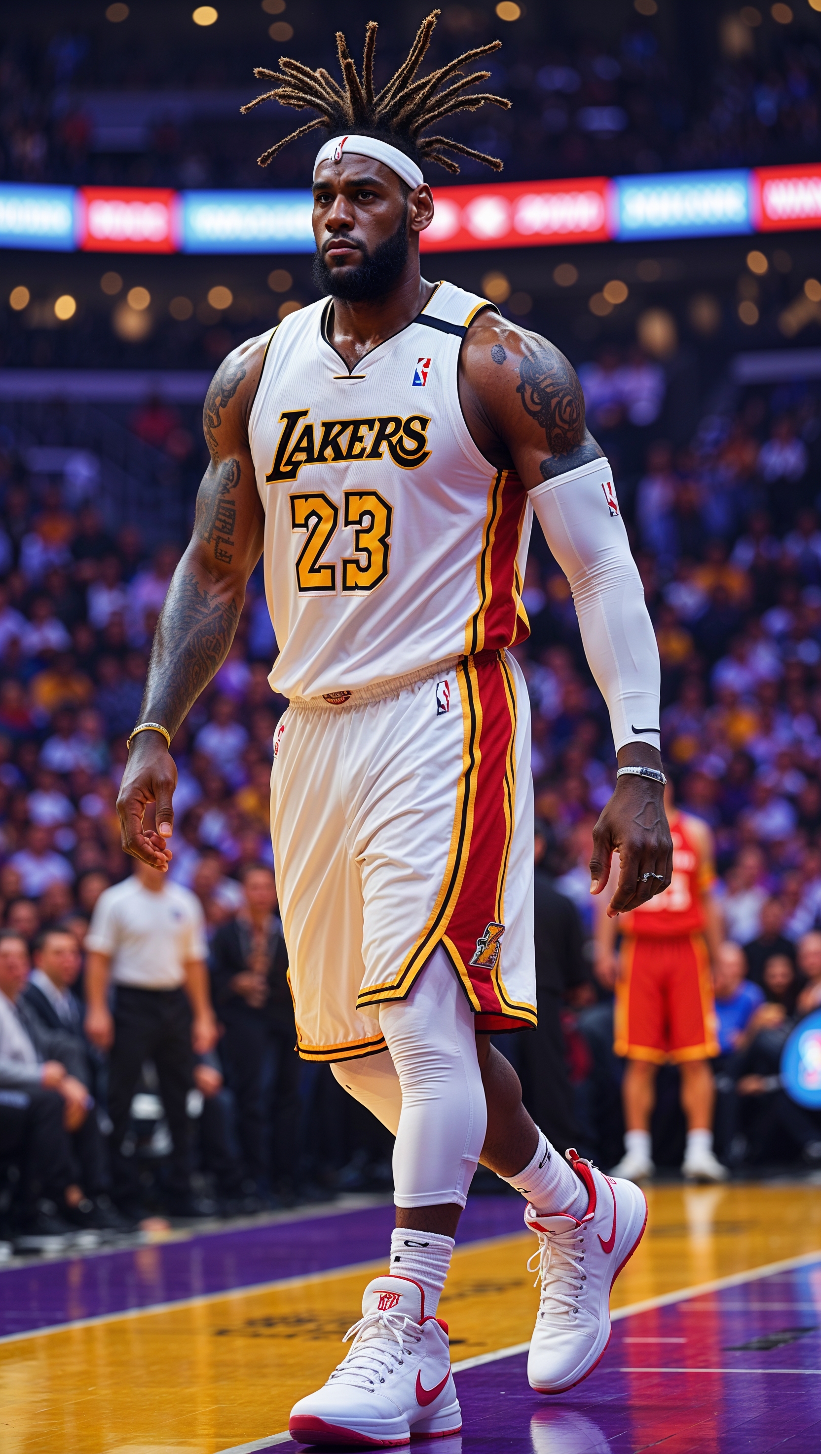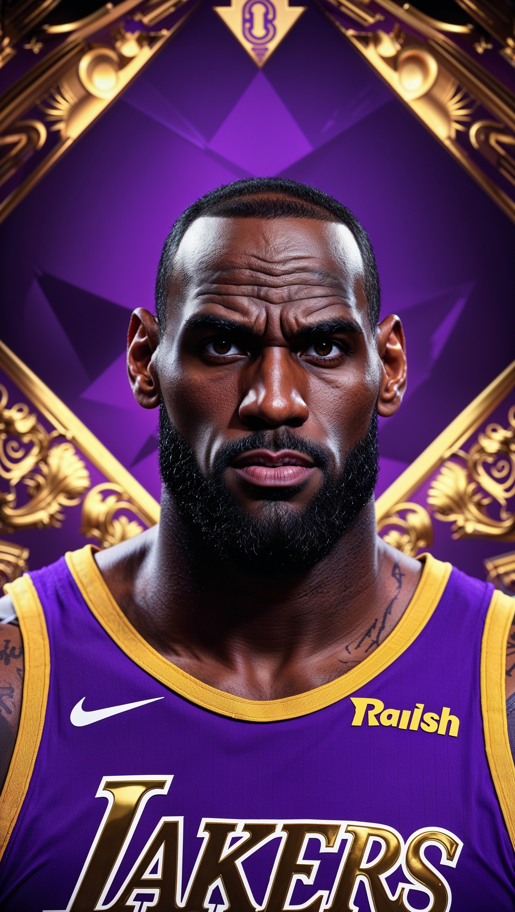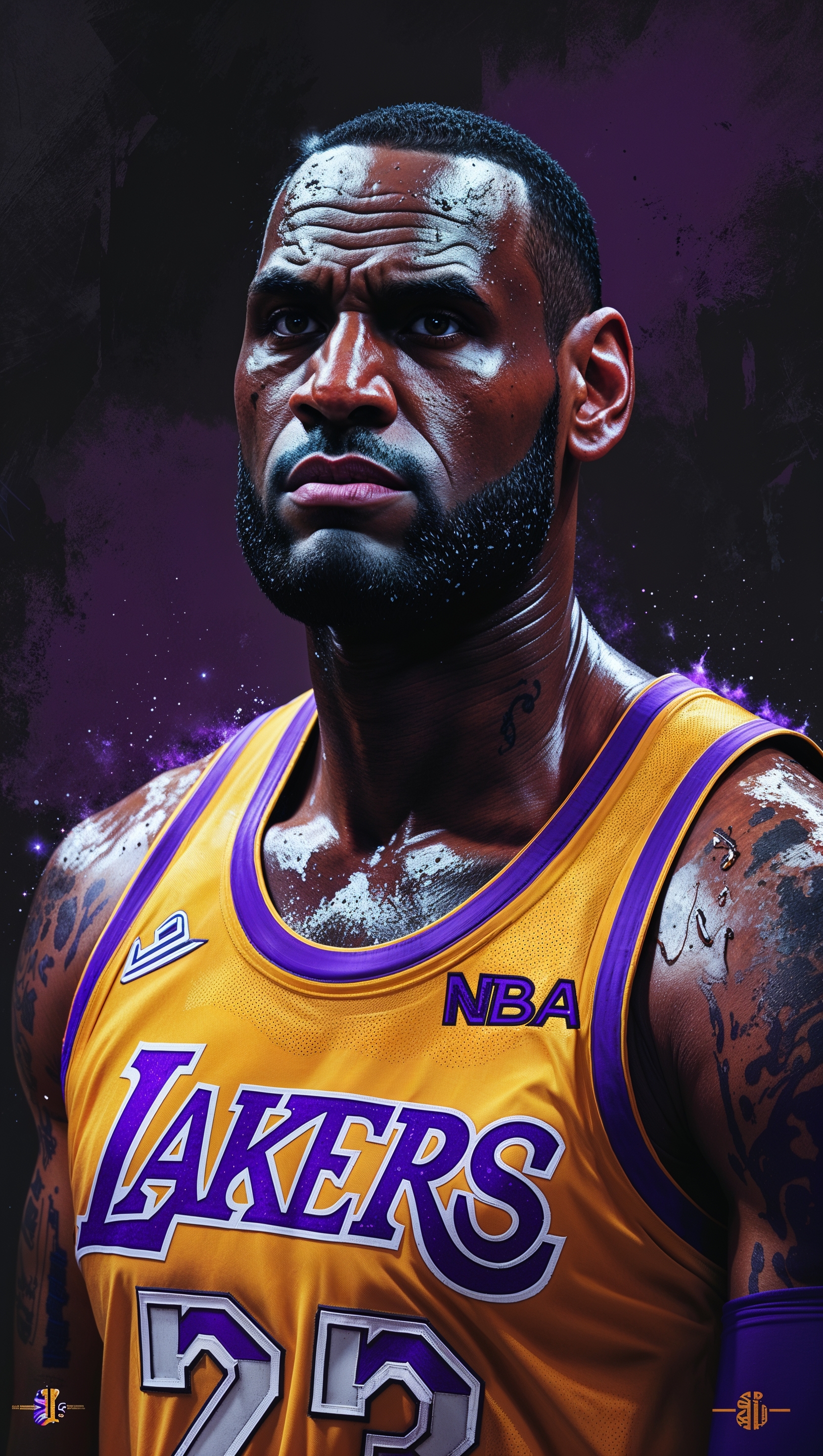 1664x2944 LeBron James in a Lakers jersey with a dark background