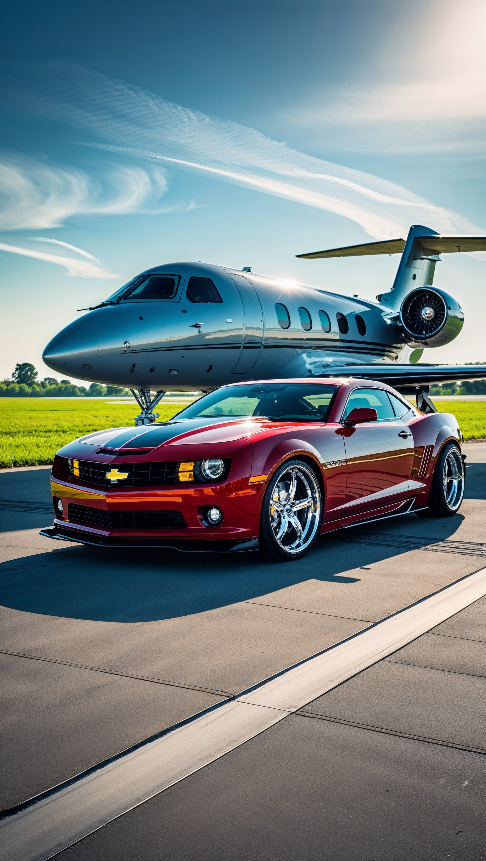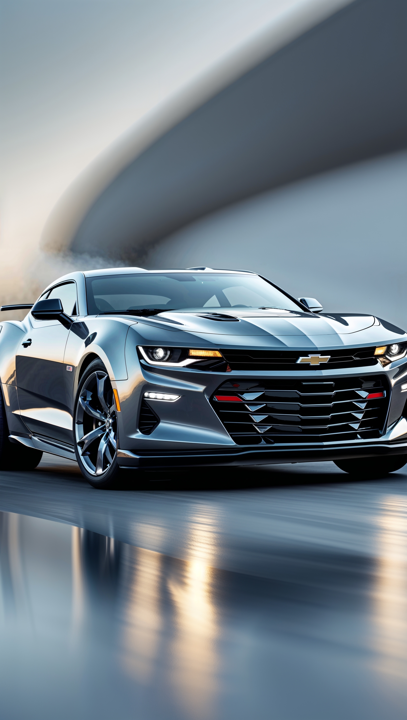 1664x2944 Close-up front view of a Camaro with blurred background, luxury design