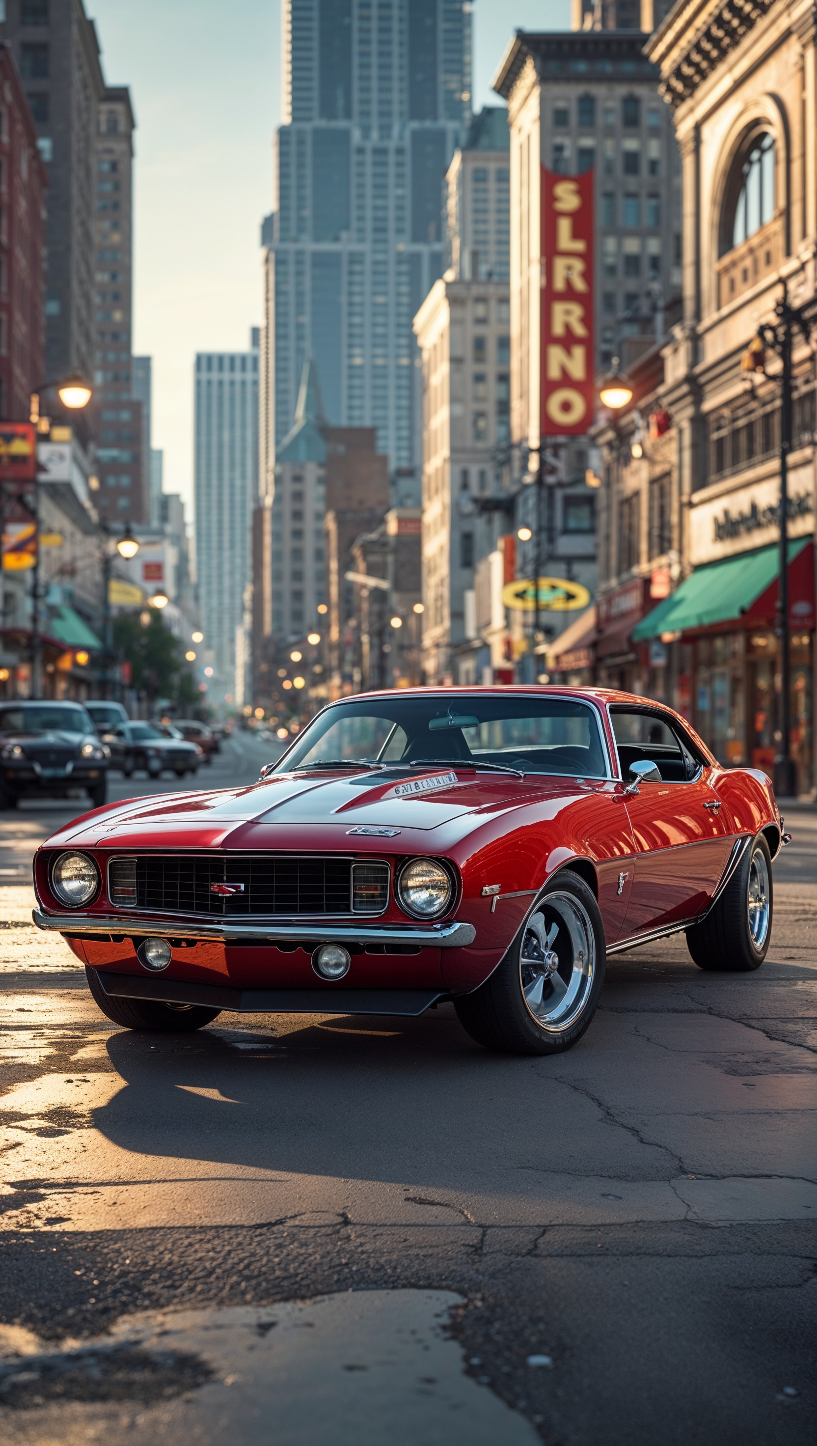 1664x2944 Classic vintage Camaro with metallic paint in urban streets