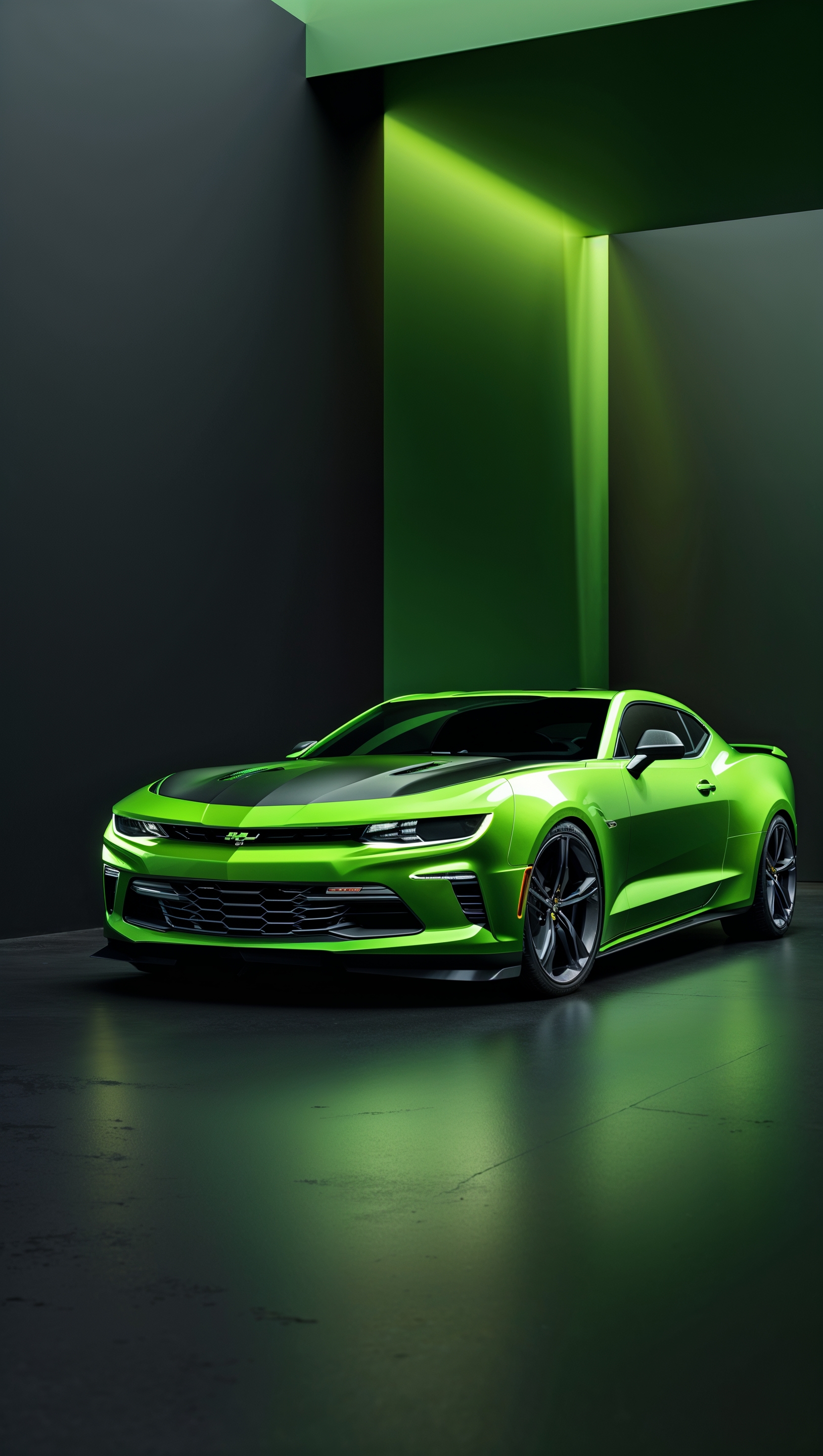 1664x2944 Simple wallpaper with graphic Camaro design and vibrant colors