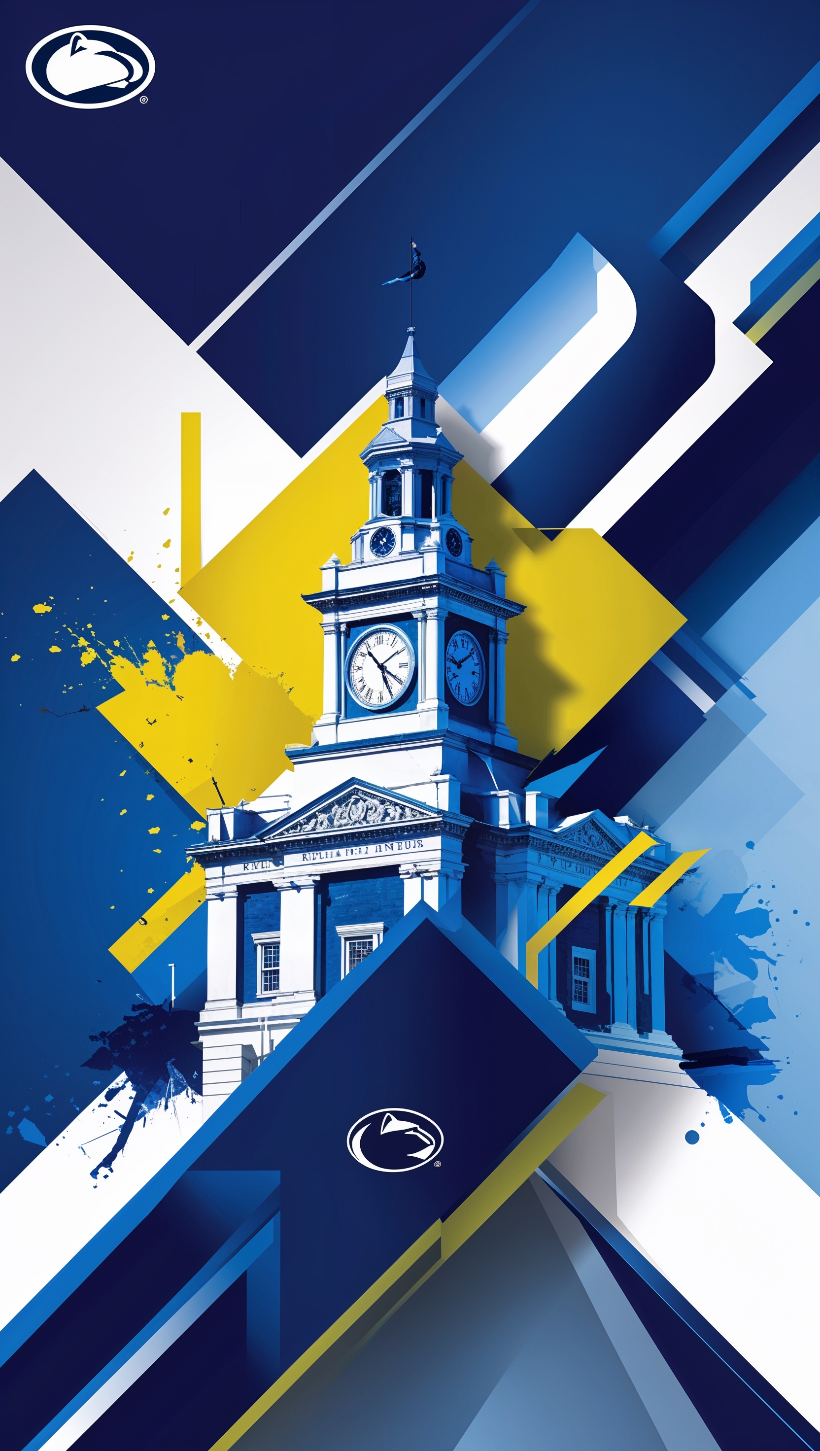1664x2944 Design an iPhone wallpaper featuring iconic Penn State University elements, merging vibrant colors with modern shapes