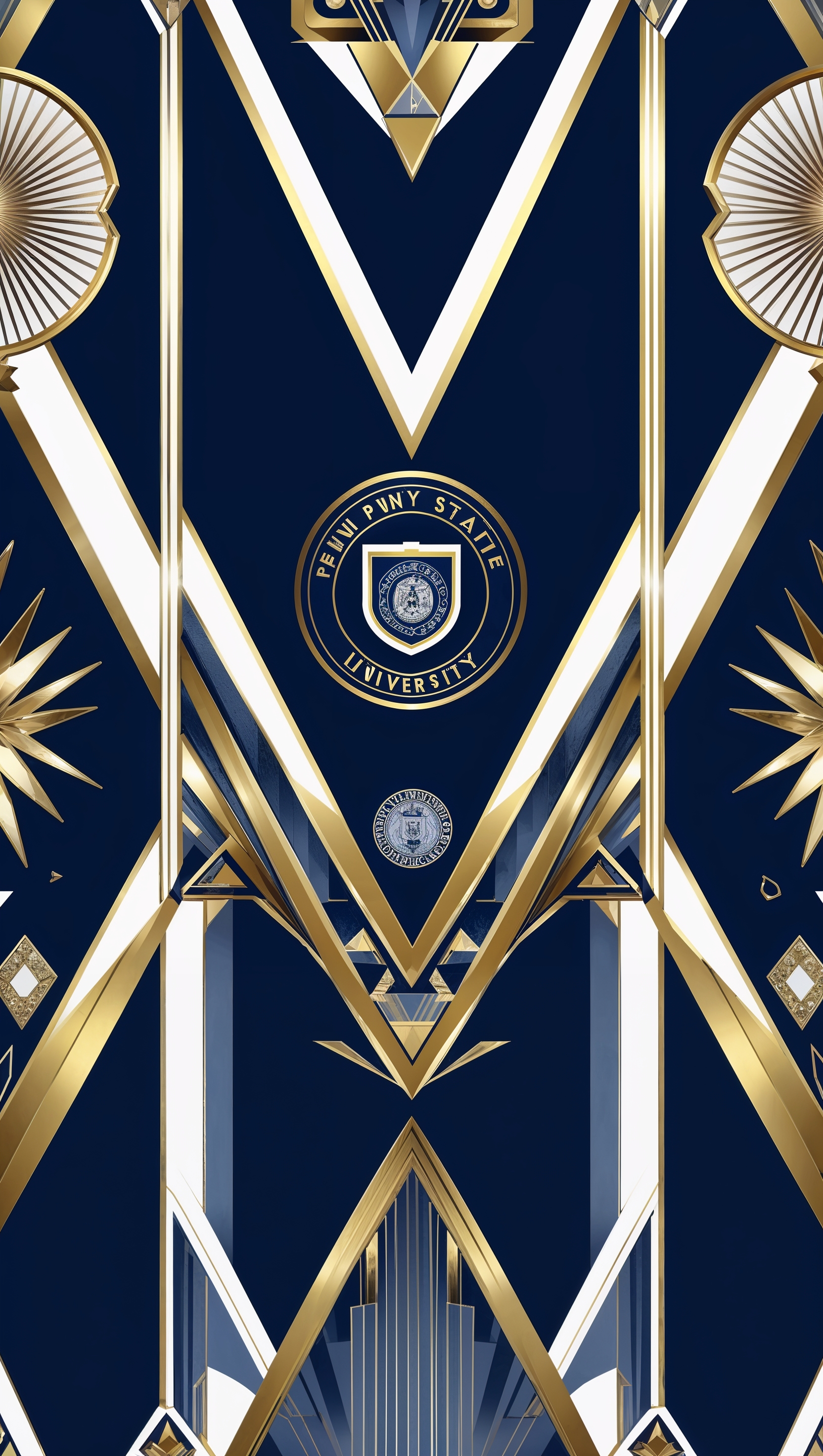 1664x2944 Illustrate an iPhone wallpaper in Art Deco style, using luxurious geometric shapes and historic elements of Penn State University