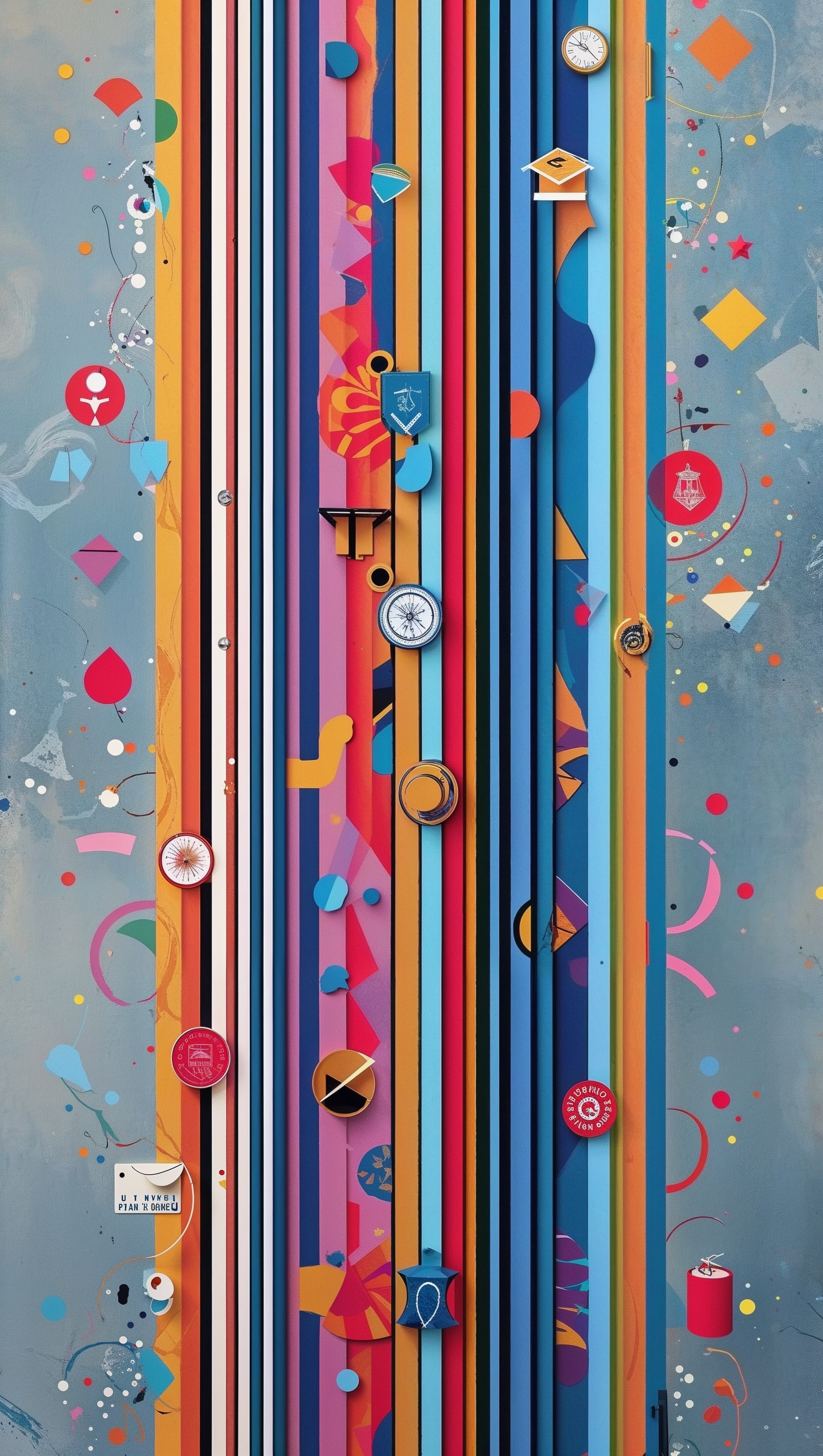 1664x2944 Illustrate an iPhone wallpaper using color stripes and unique designs, blending university elements with visual creativity