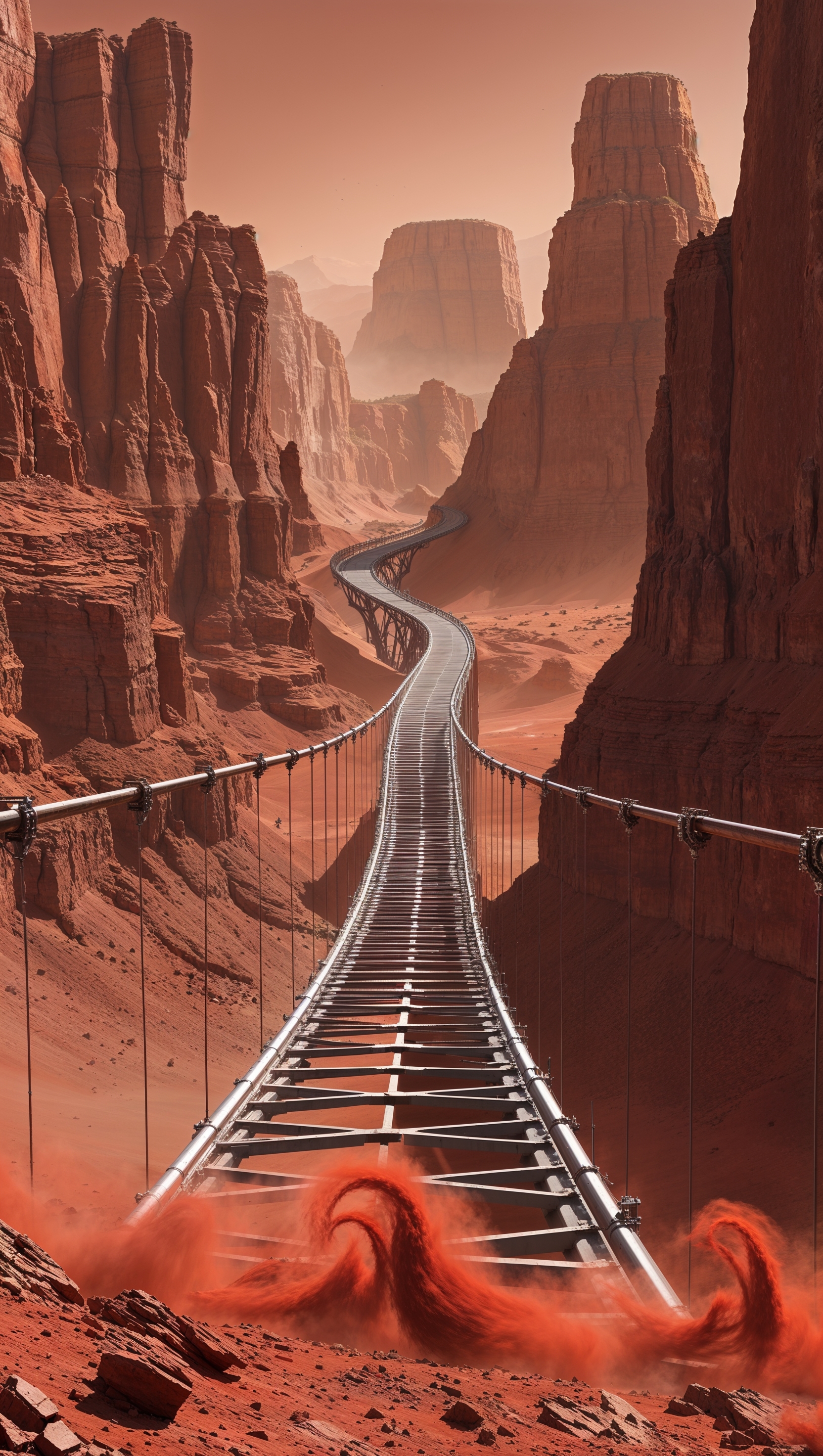1664x2944 Suspended bridge built over Martian cliffs