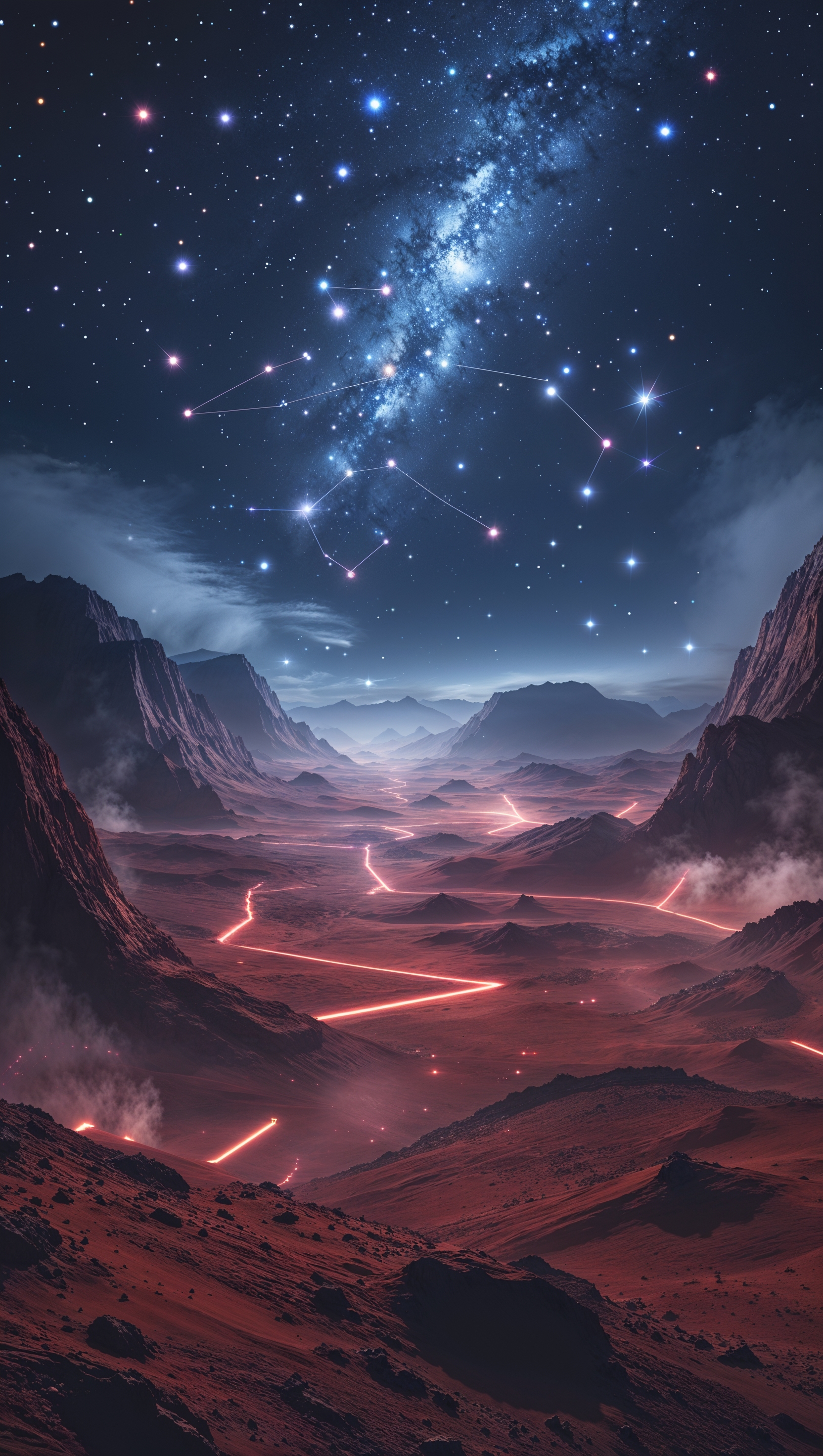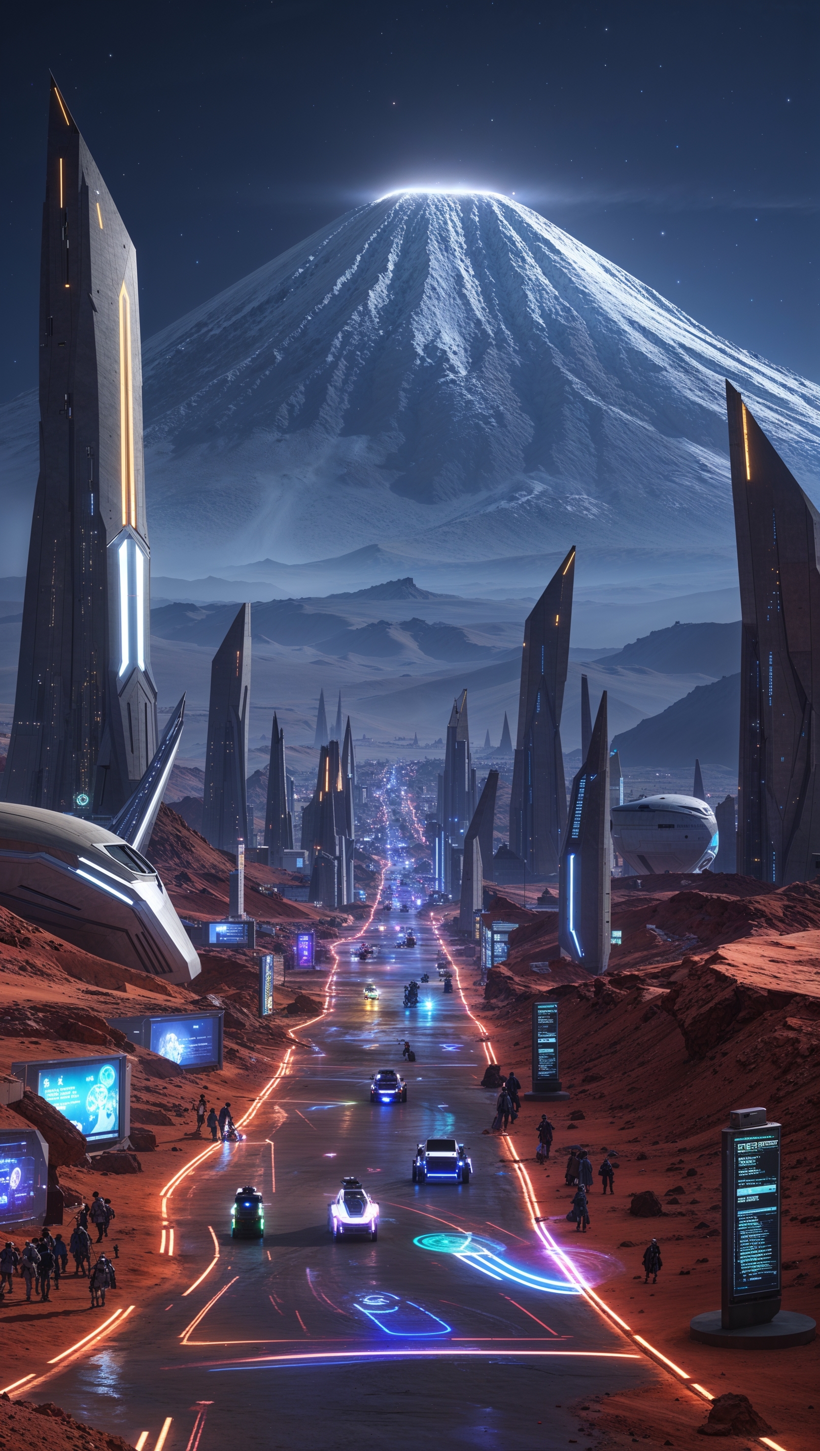 1664x2944 Cyberpunk-style Mars with neon-filled sky