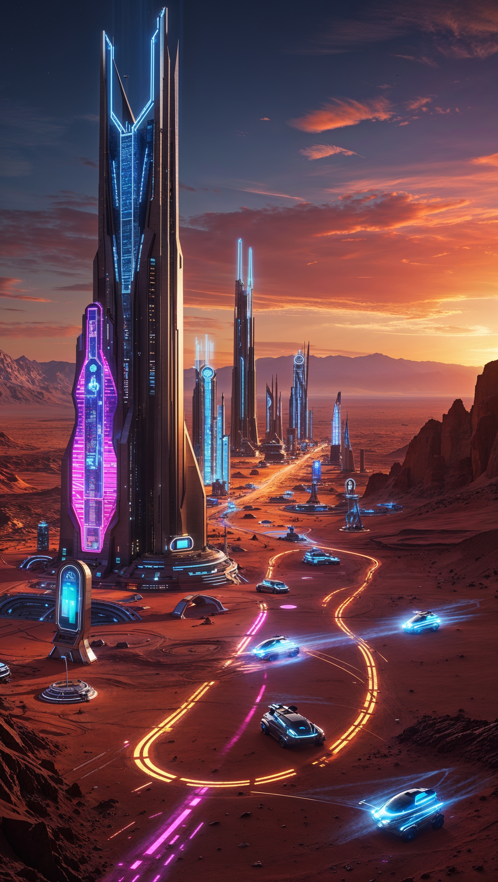 1664x2944 Futuristic metropolis on Mars at night