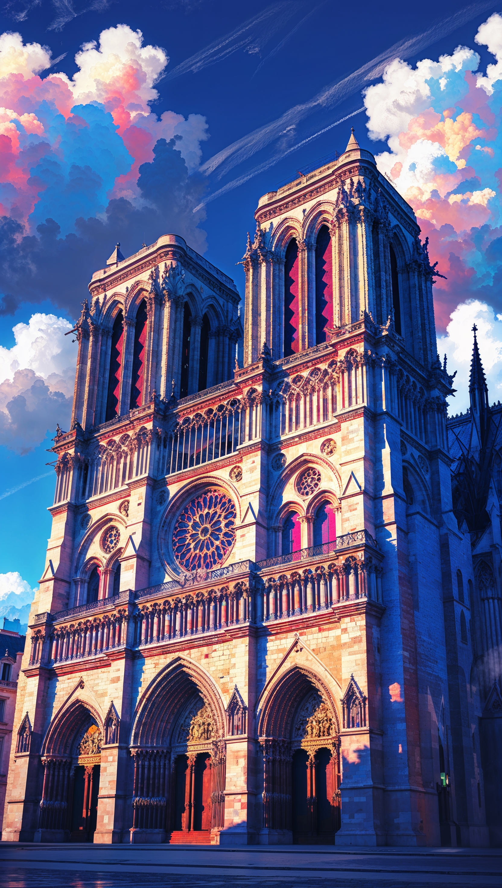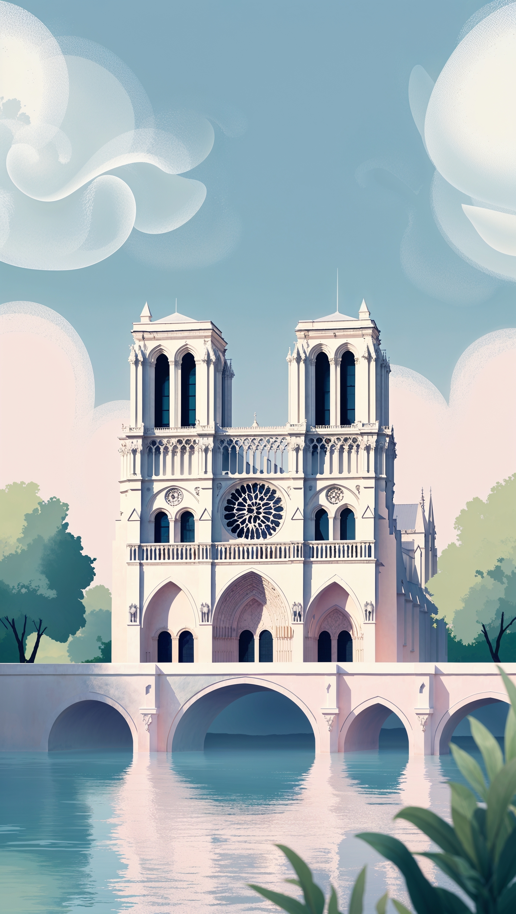 1664x2944 Cartoon-style Notre Dame for iPhone wallpaper