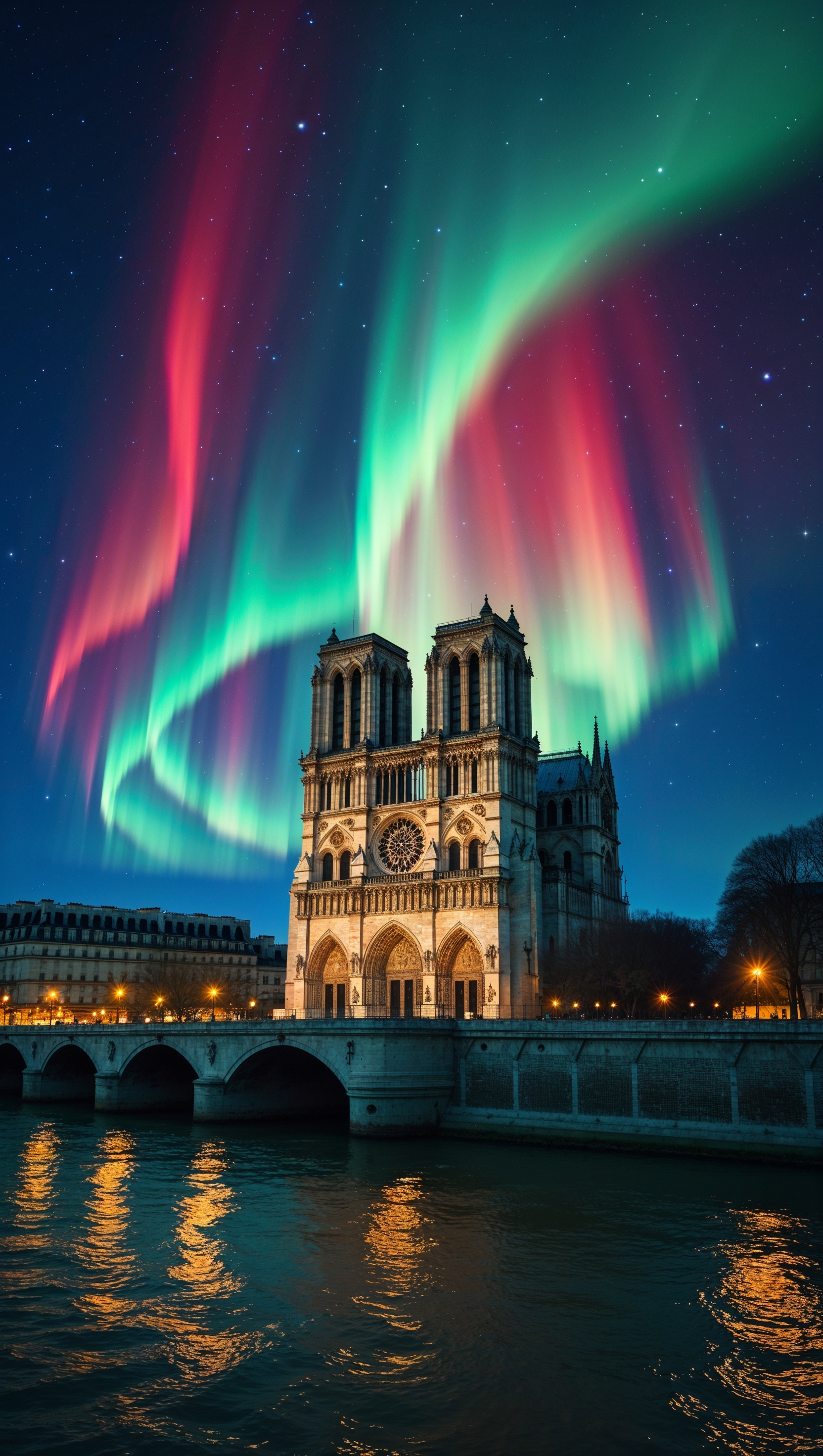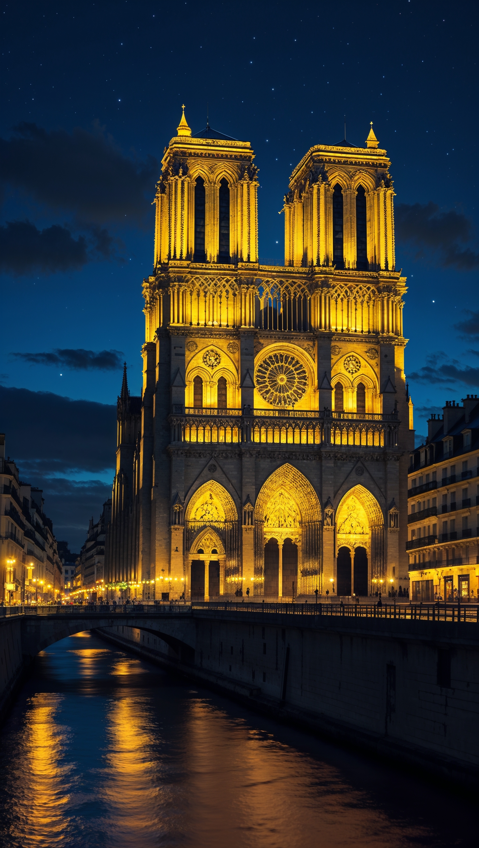 1664x2944 Notre Dame at night with beautiful lights, perfect for iPhone wallpaper
