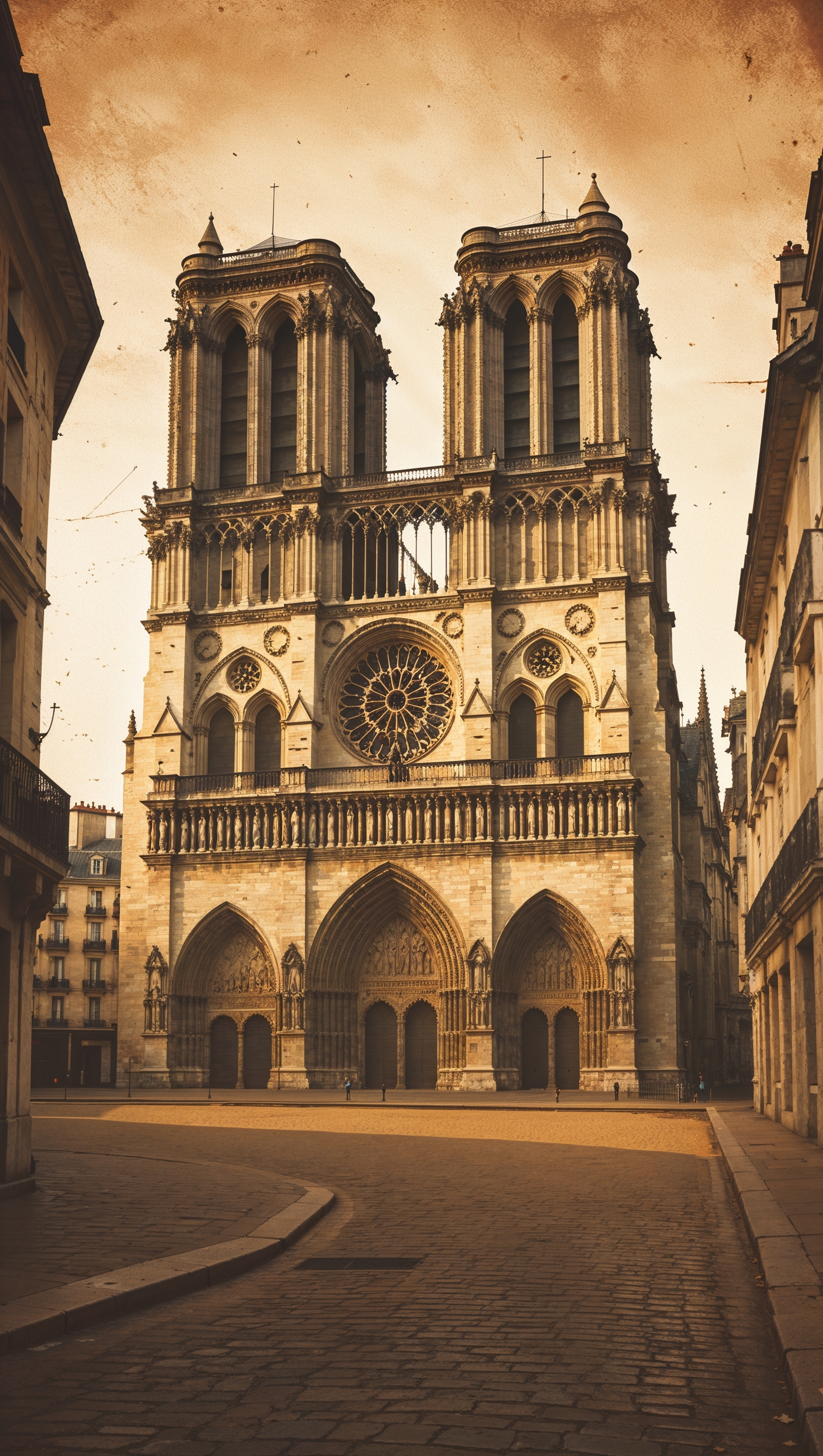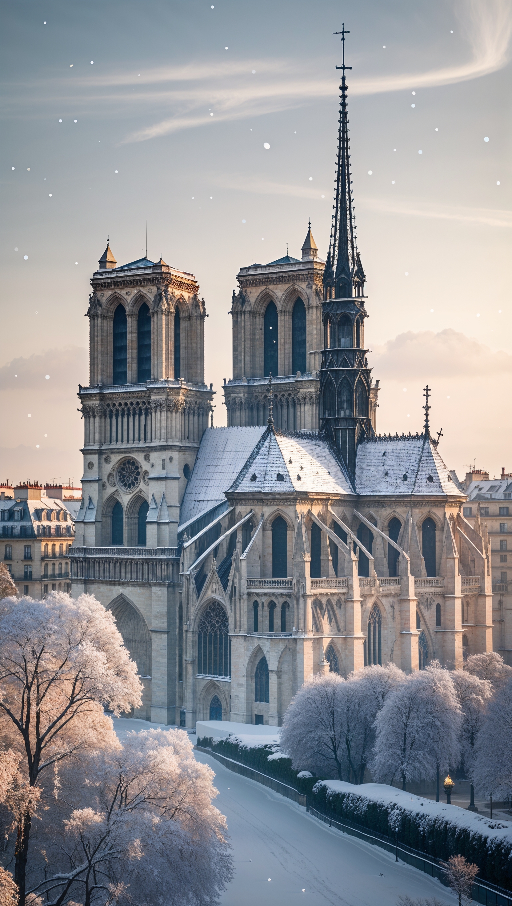 1664x2944 Close-up of Notre Dame’s architecture with soft lighting