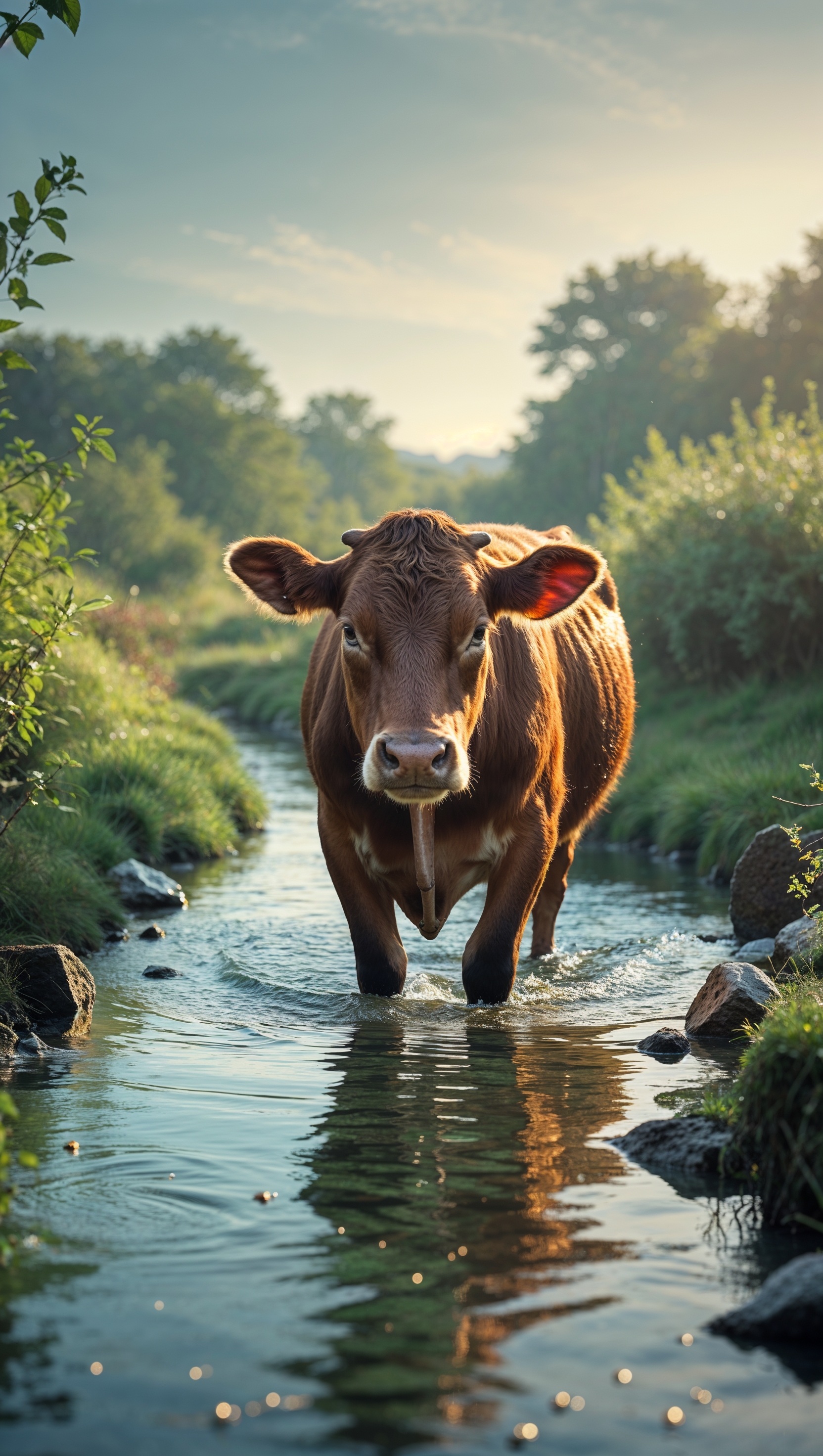 1664x2944 An image of a cow crossing a stream for an iPhone wallpaper