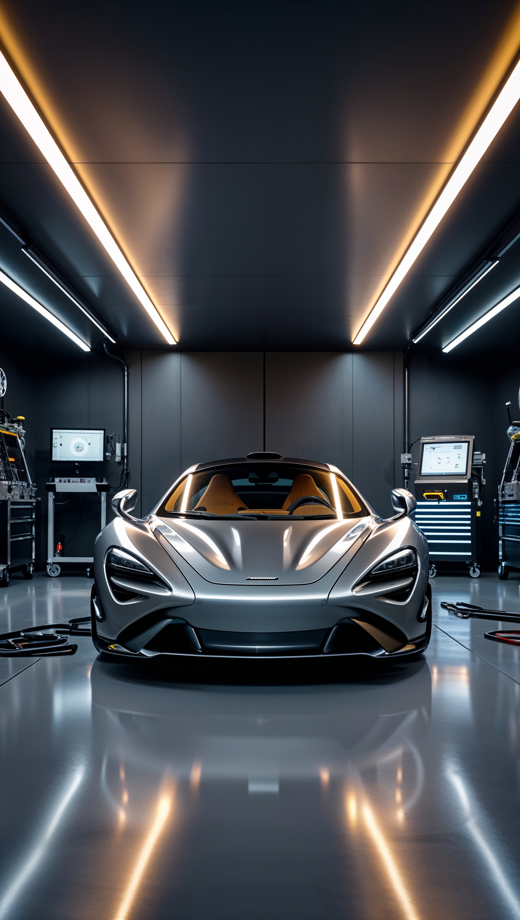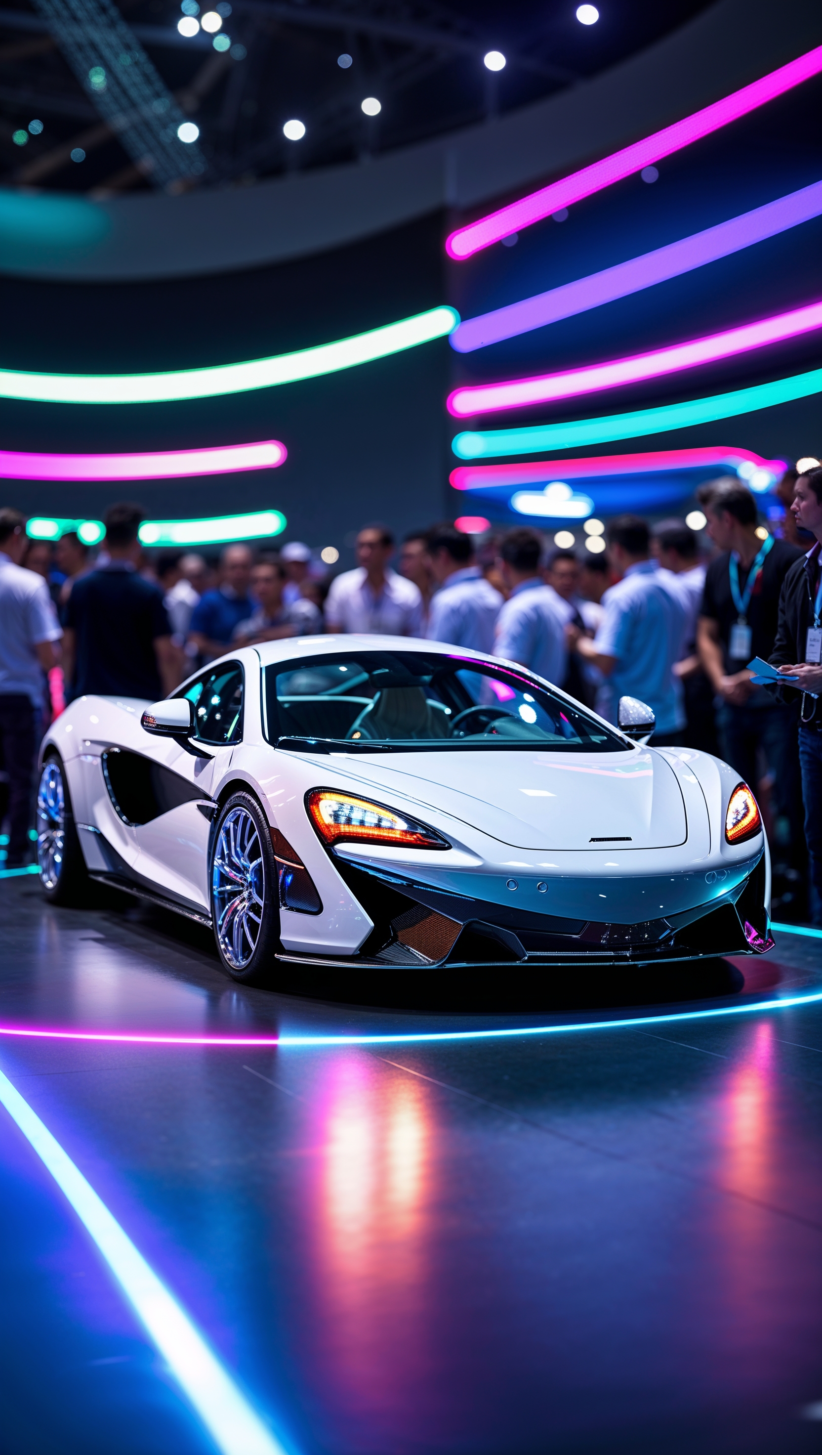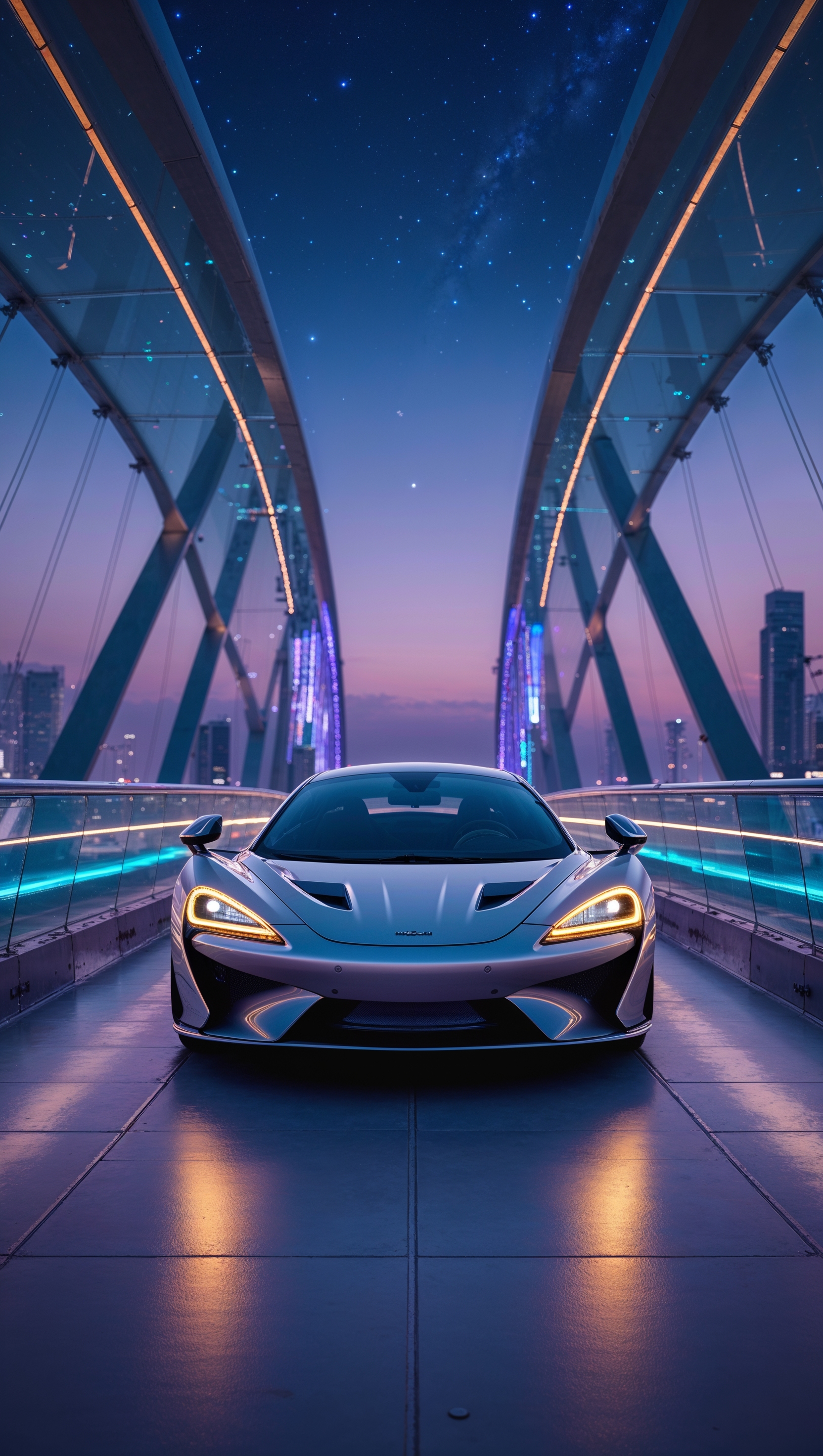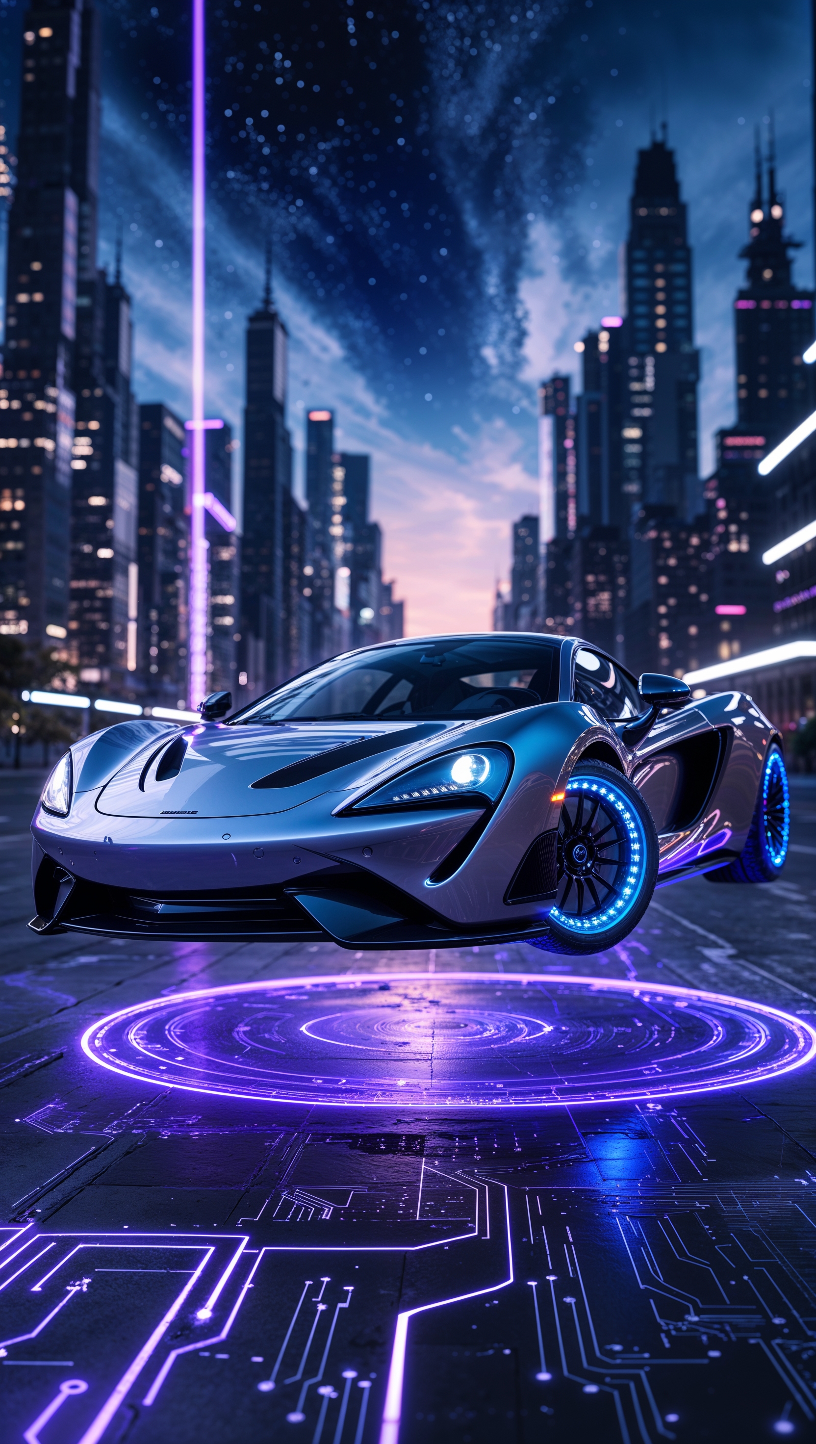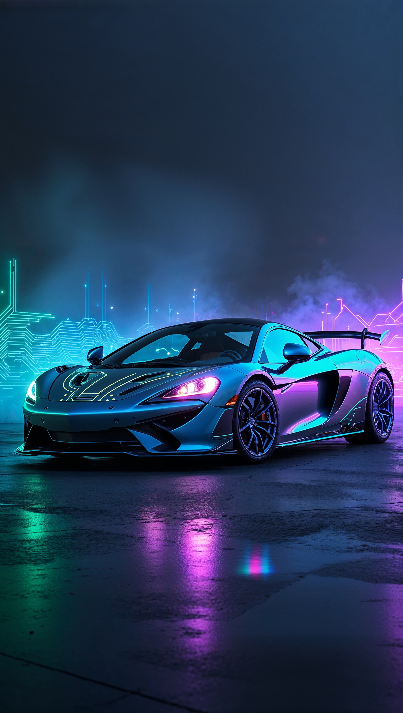 1664x2944 McLaren in a sci-fi environment with purple and blue neon lights