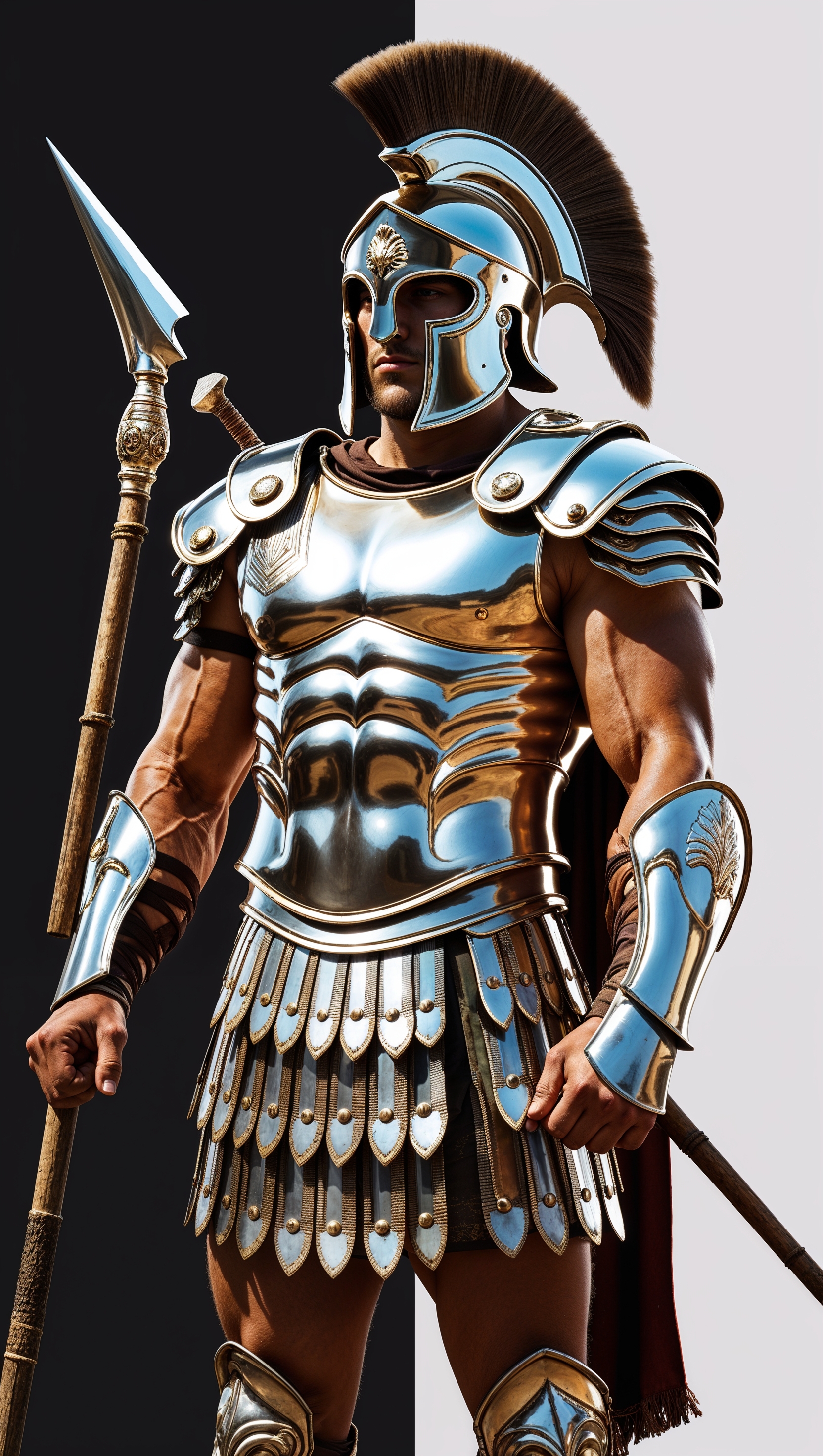 1664x2944 Spartan with black and white background and shiny armor