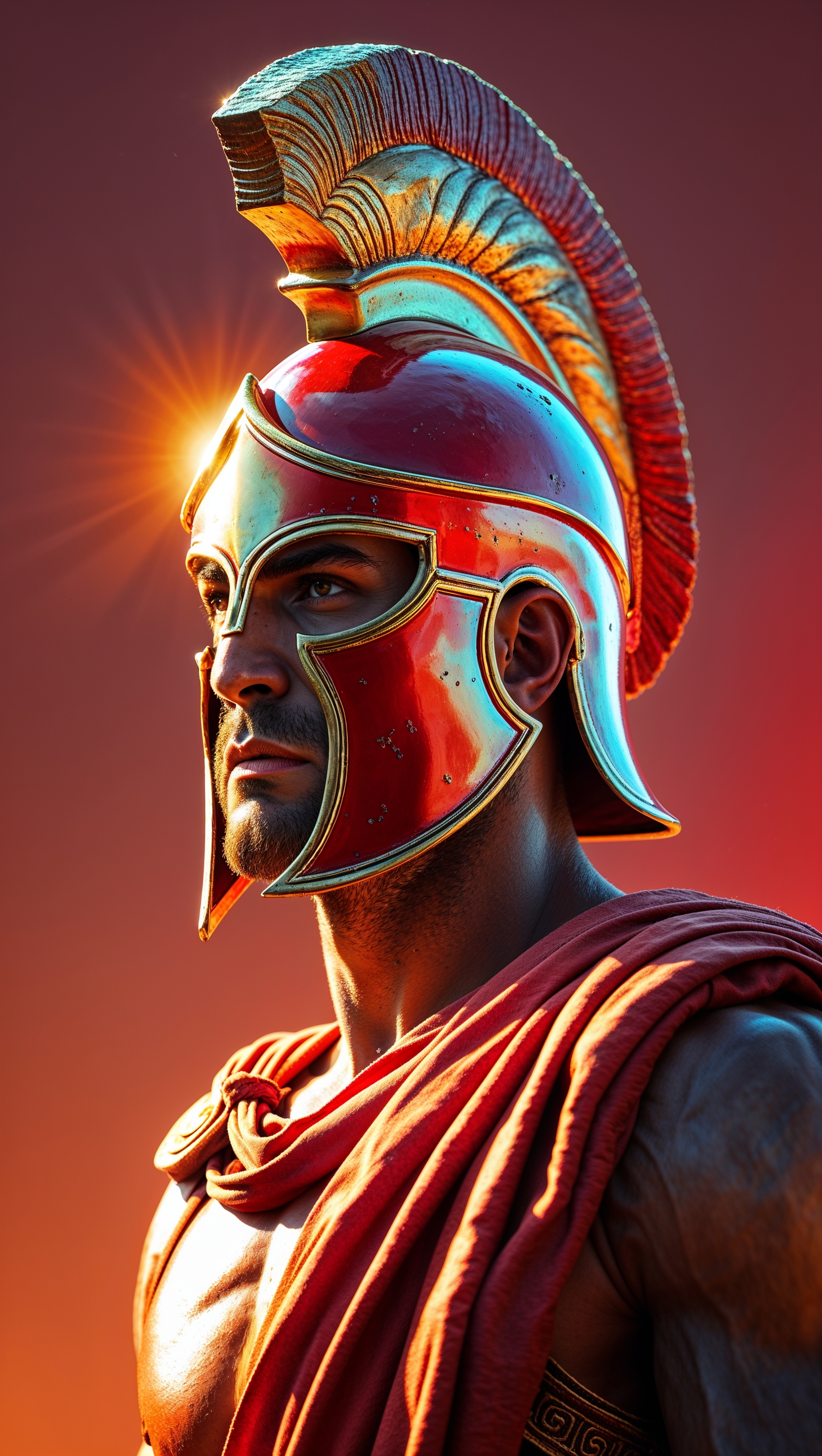 1664x2944 Spartan with red helmet in orange light