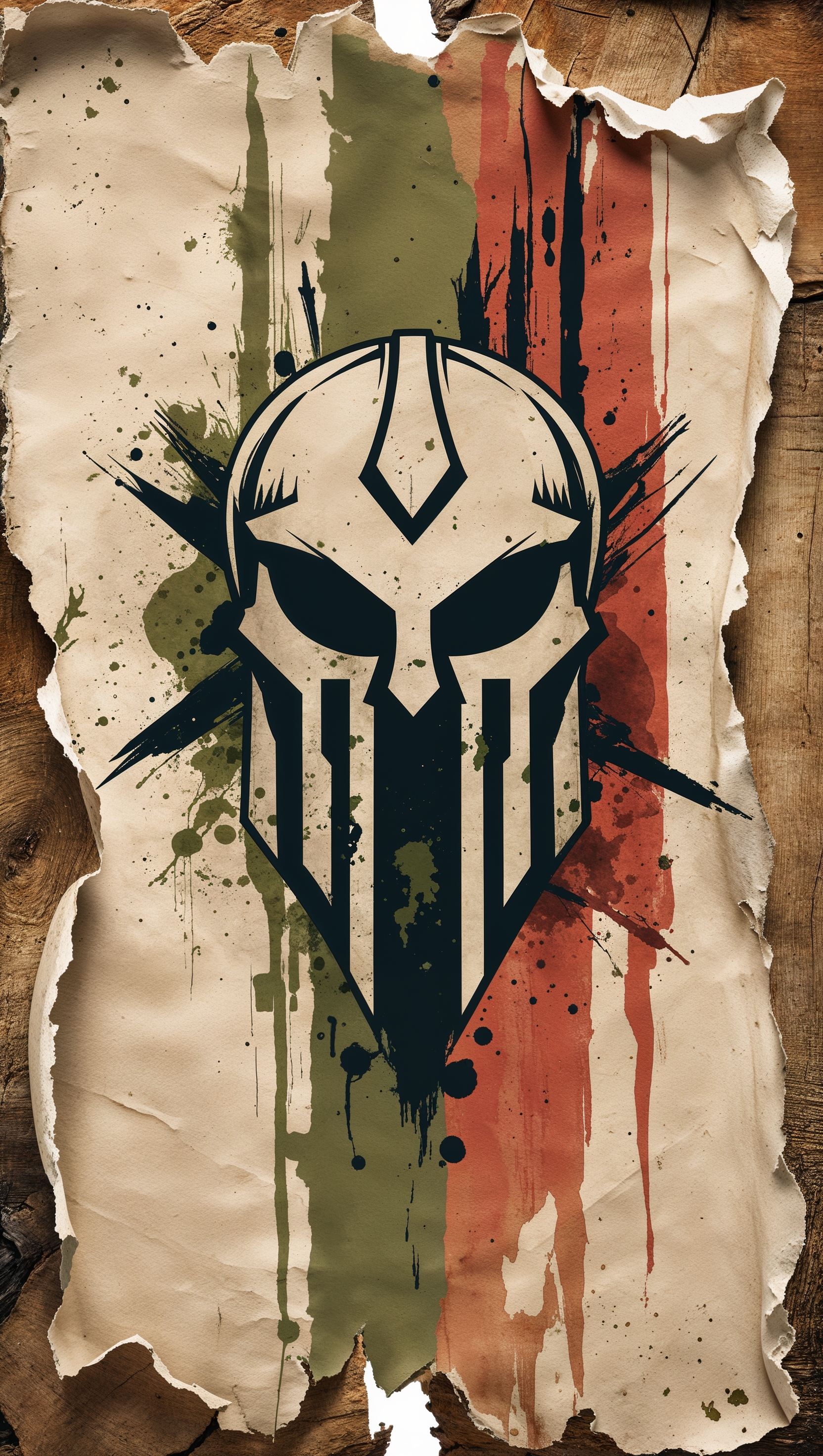 1664x2944 Spartan design on torn paper with artistic style
