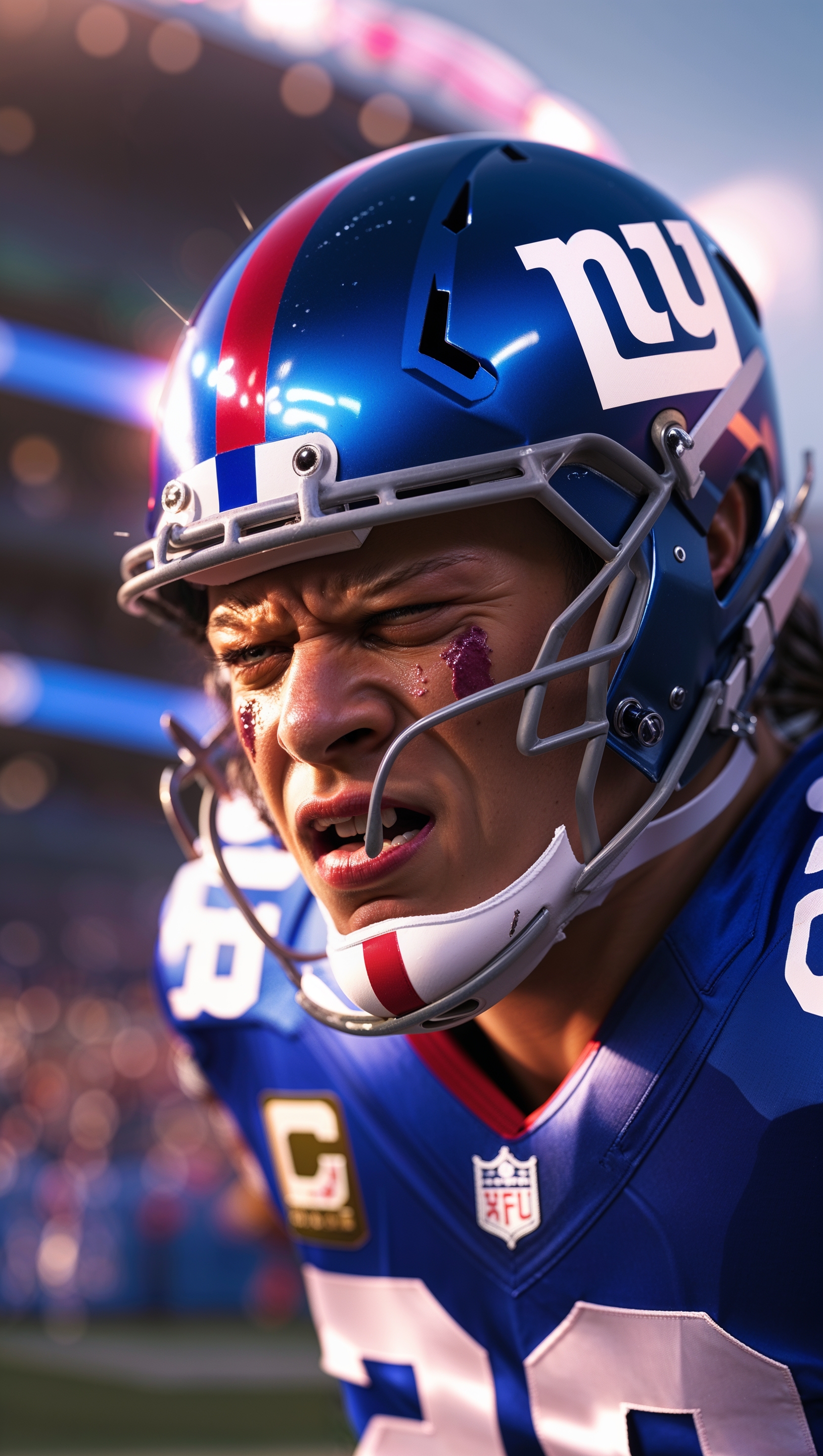 1664x2944 NY Giants player in slow motion with cinematic effect