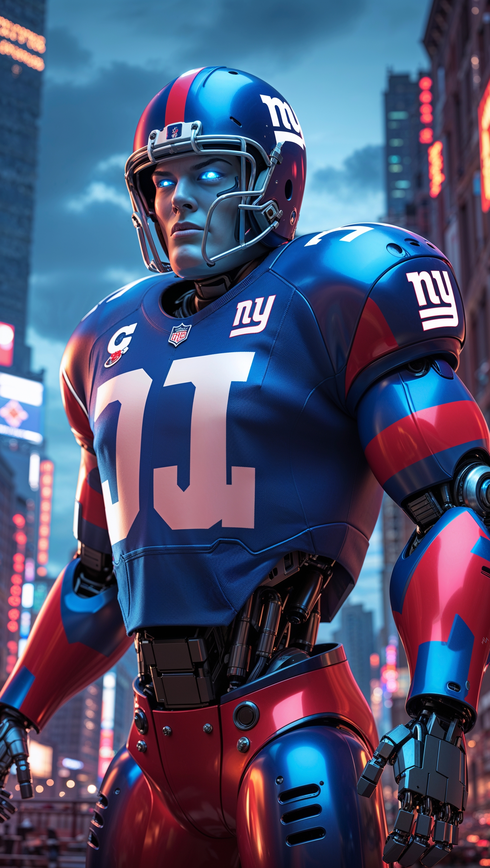 1664x2944 Fantasy image of NY Giants robot player for wallpaper