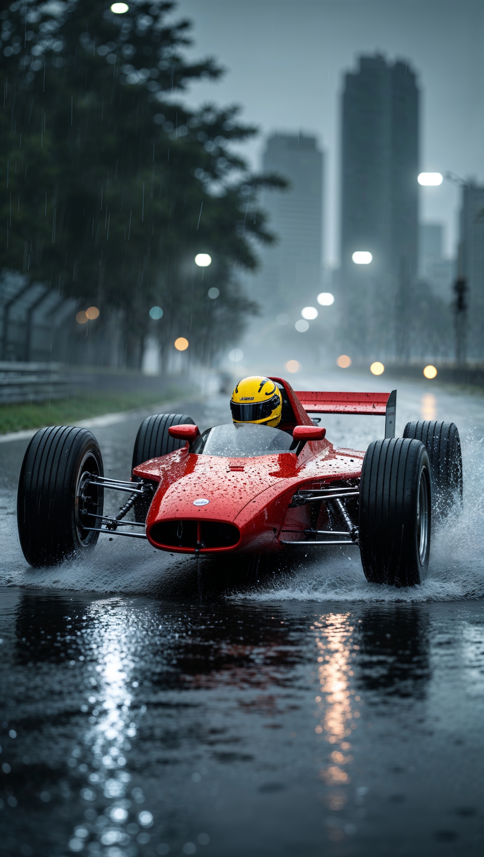 1664x2944 Race car driving on a rainy road