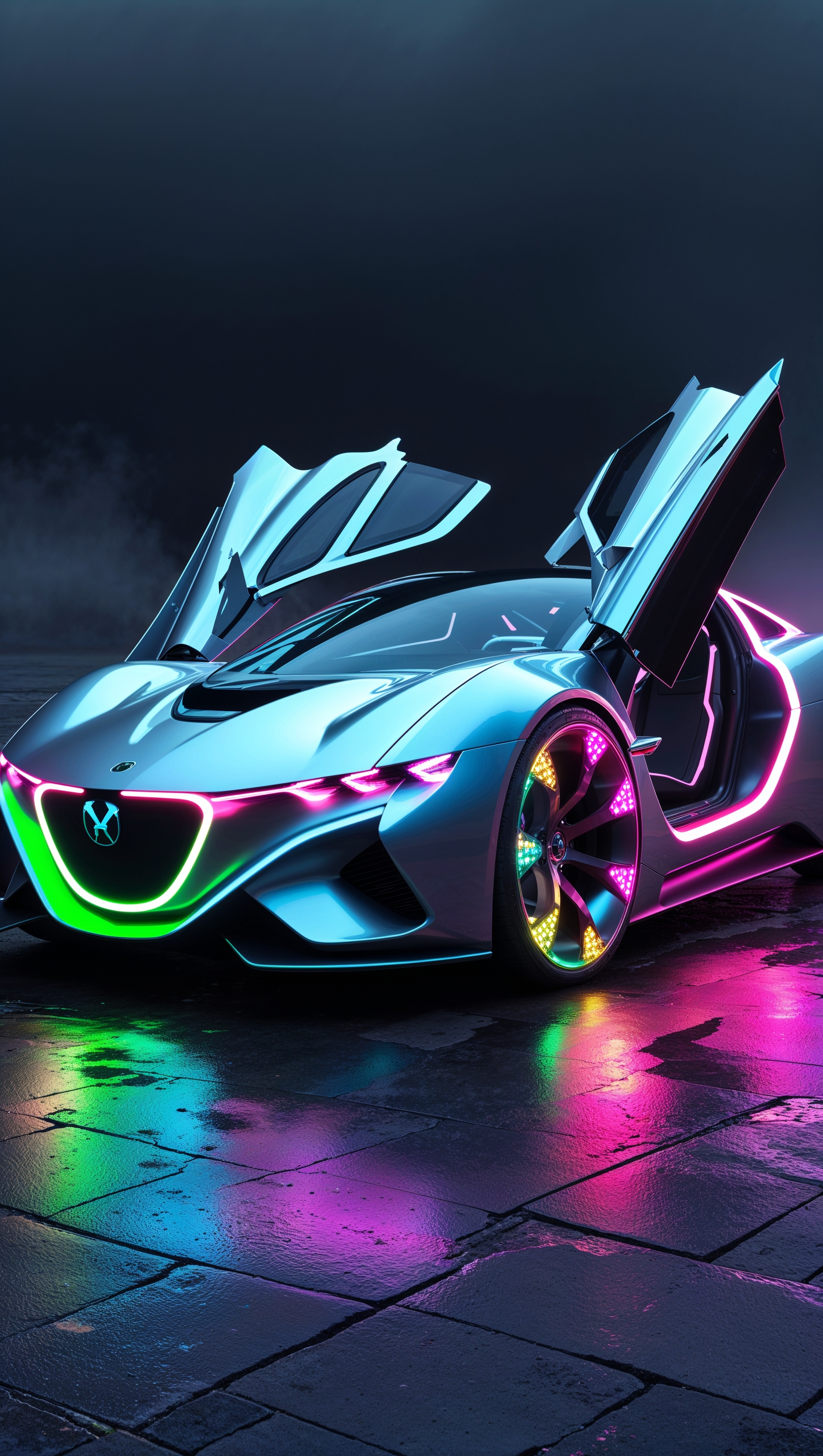 1664x2944 Concept car with futuristic design and colorful lighting