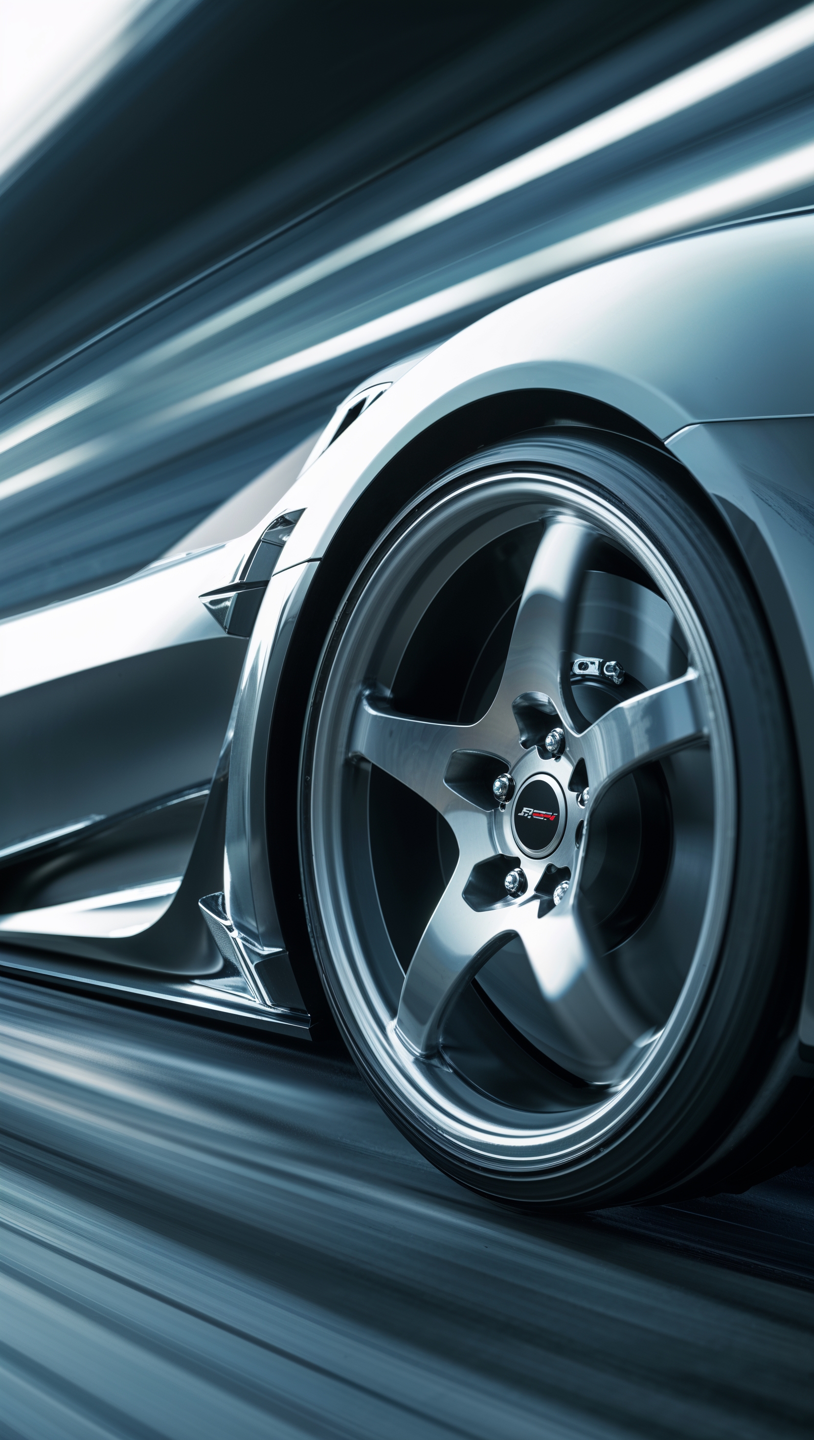 1664x2944 Close-up of a sports car wheel with motion blur effect