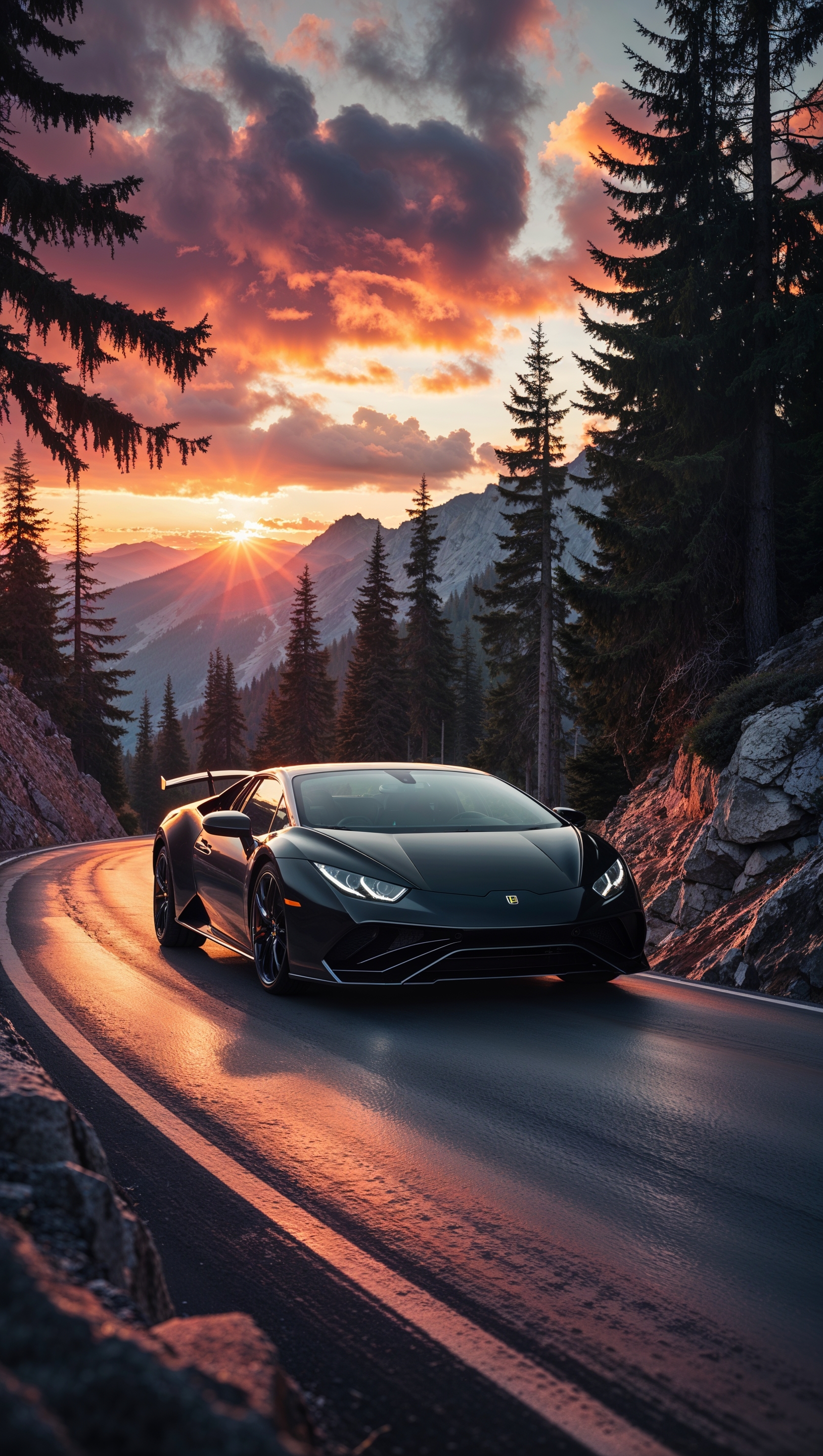 1664x2944 Lamborghini on a mountain road at sunset
