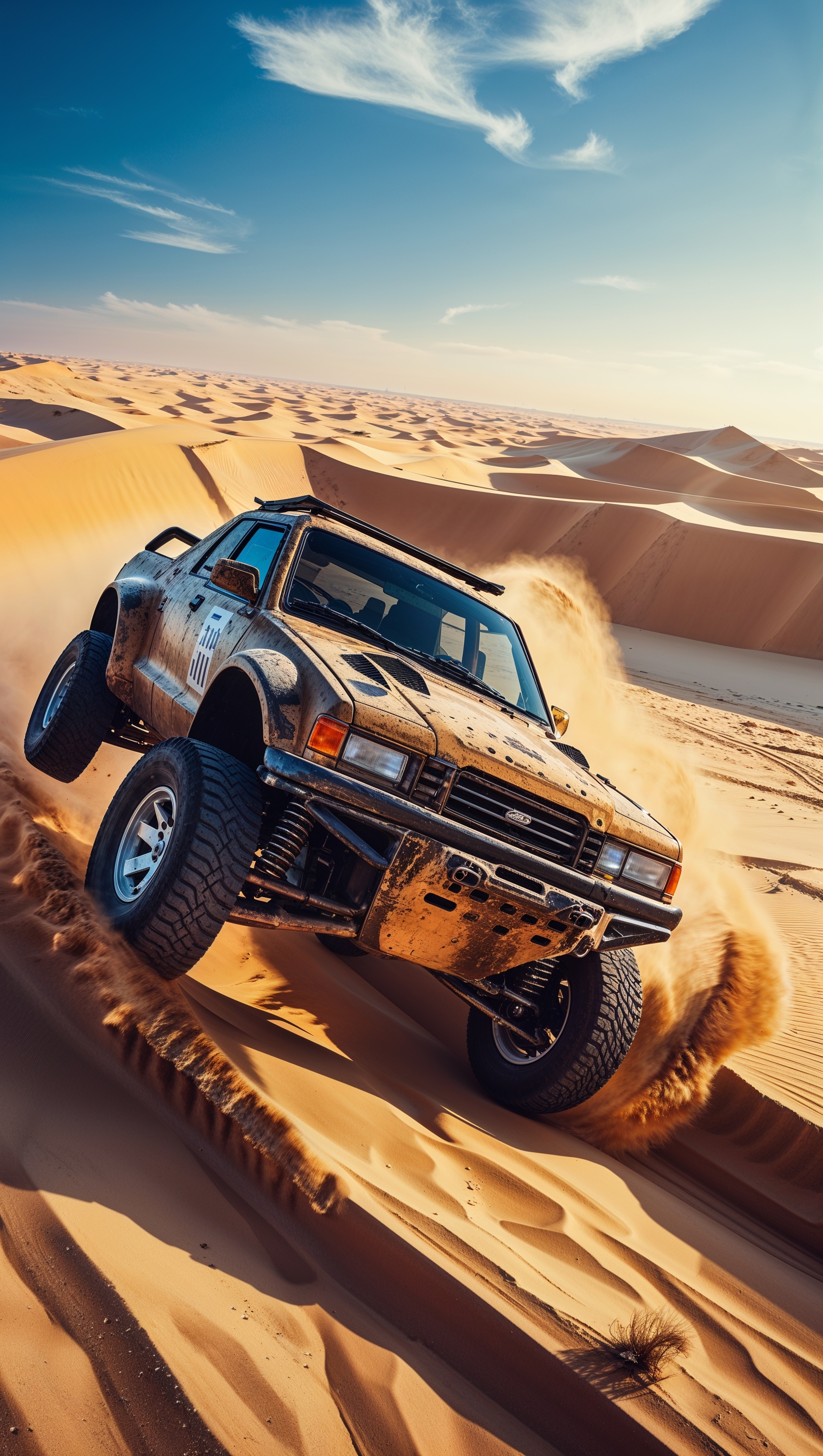 1664x2944 Off-road car jumping over sand dunes