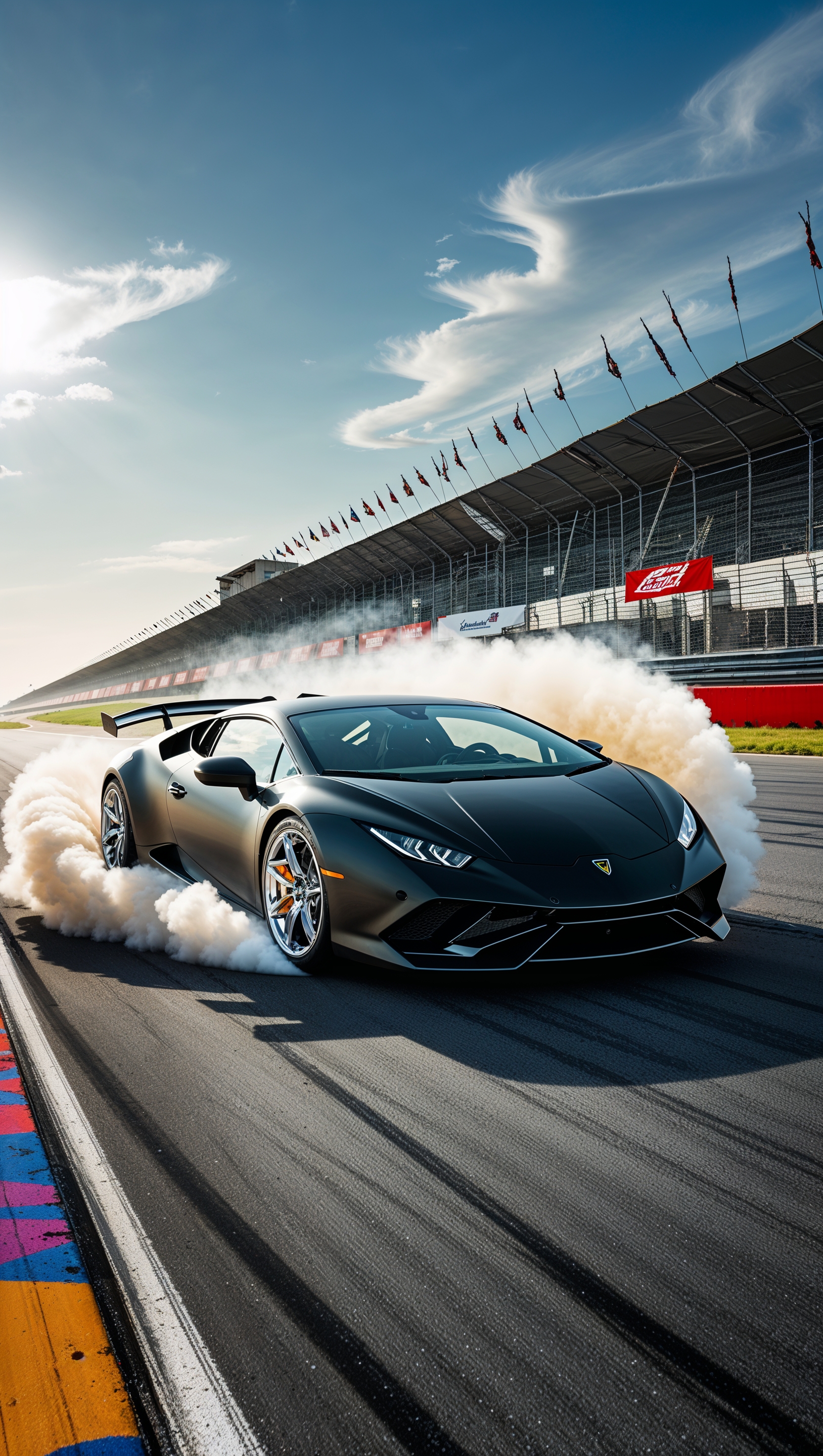 1664x2944 Lamborghini drifting with tire smoke on a race track