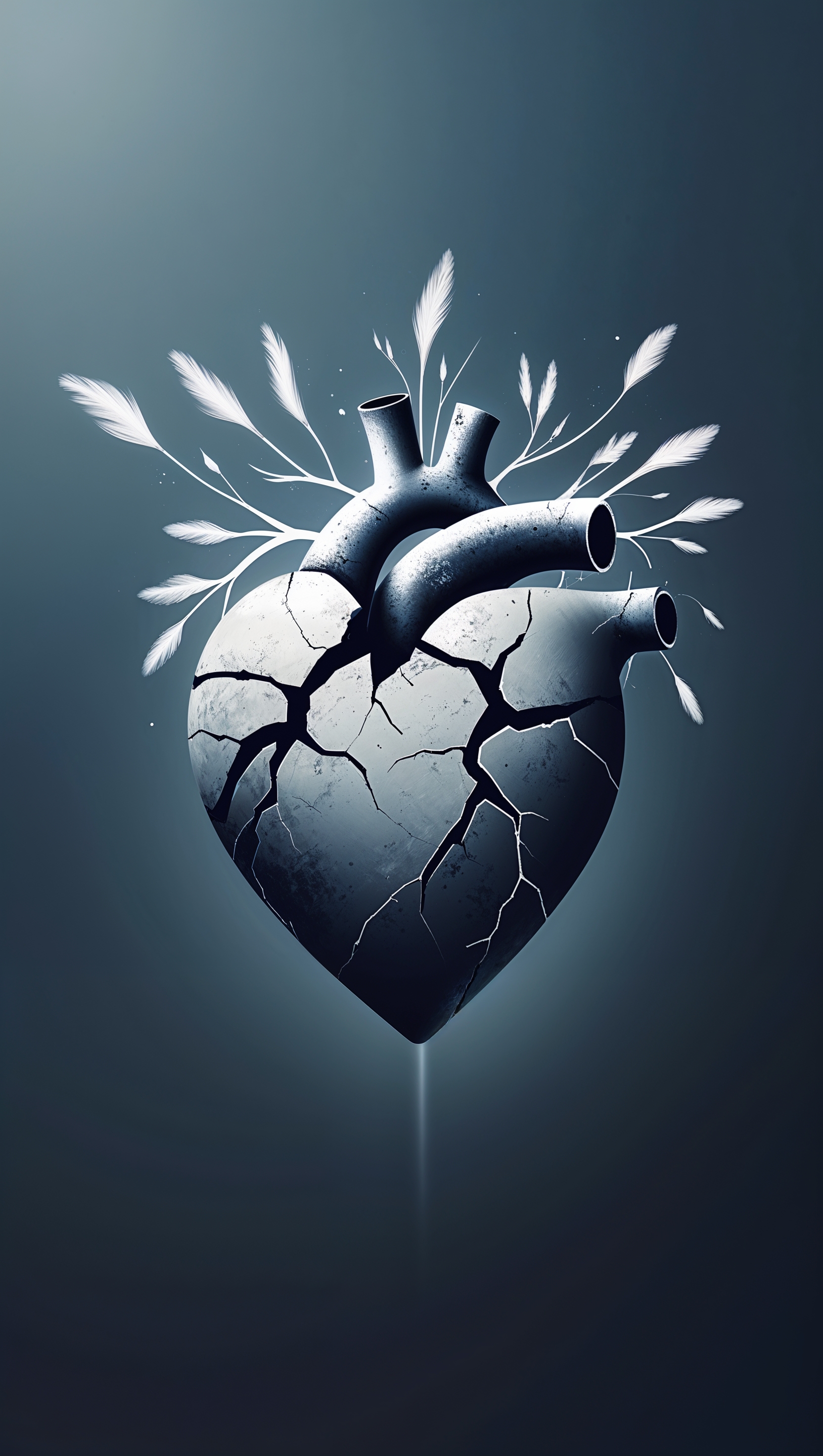 1664x2944 Minimalist iPhone wallpaper showing a cracked heart with fading light