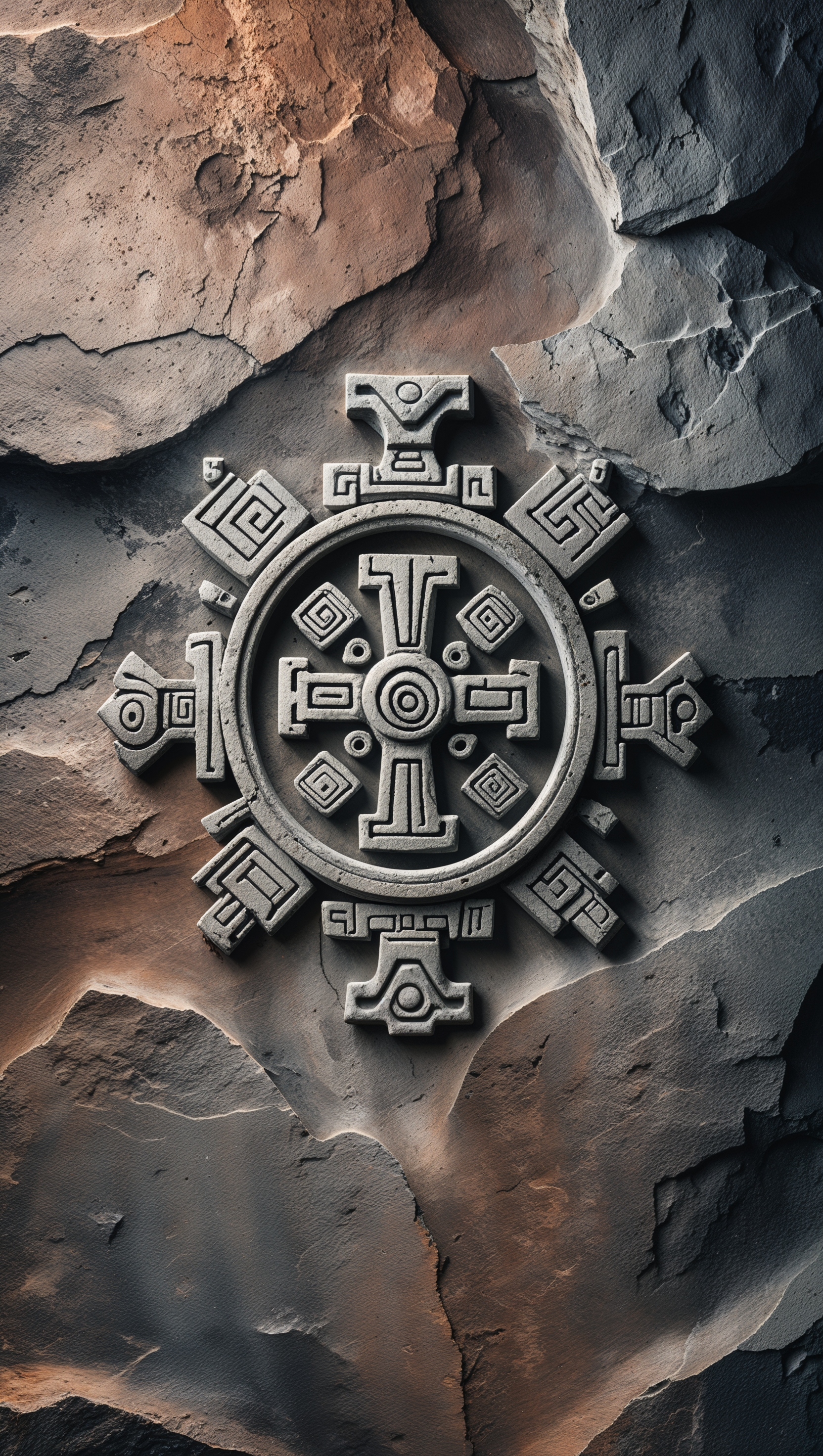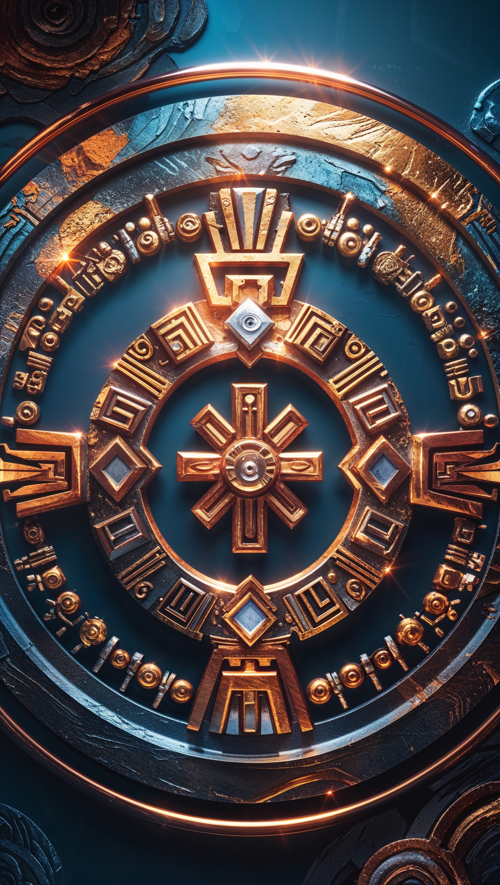 Metallic effect on ancient Aztec symbols iPhone wallpaper 1664x2944 Metallic effect on ancient Aztec symbols iPhone wallpaper