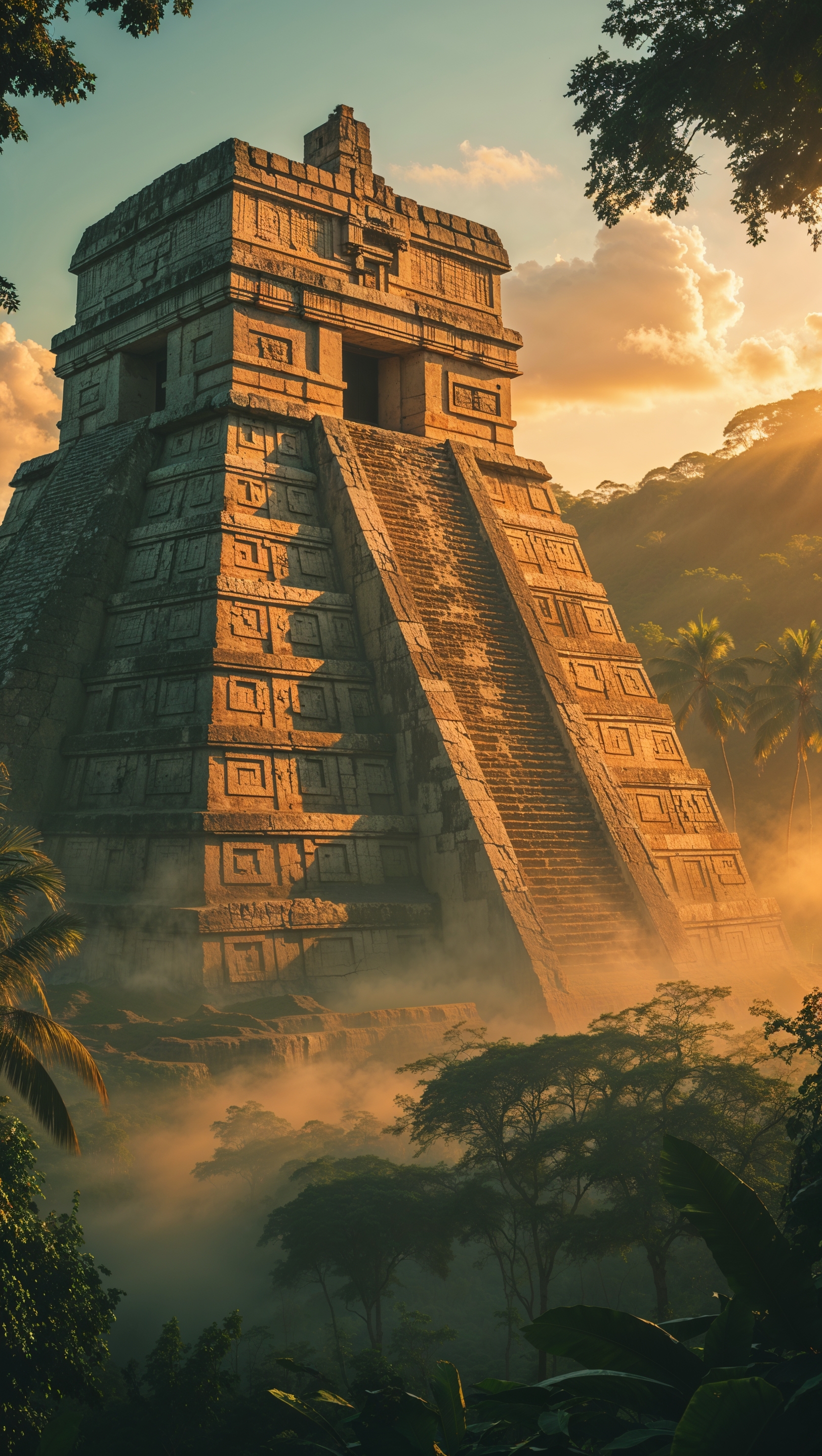Aztec temple with sunrise lighting iPhone wallpaper 1664x2944 Aztec temple with sunrise lighting iPhone wallpaper
