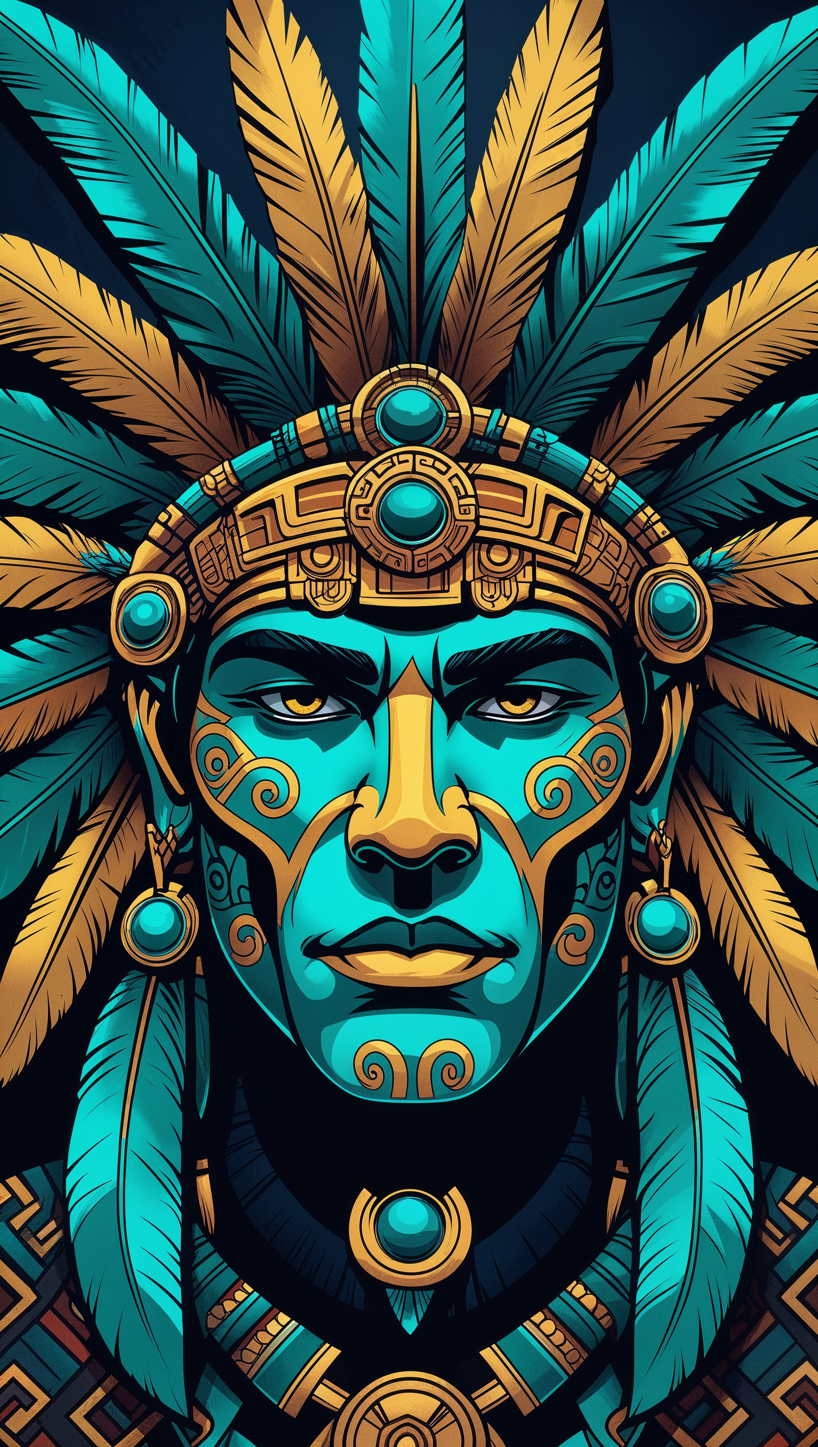 Graphic design of an Aztec warrior face in vibrant colors for iPhone 1664x2944 Graphic design of an Aztec warrior face in vibrant colors for iPhone