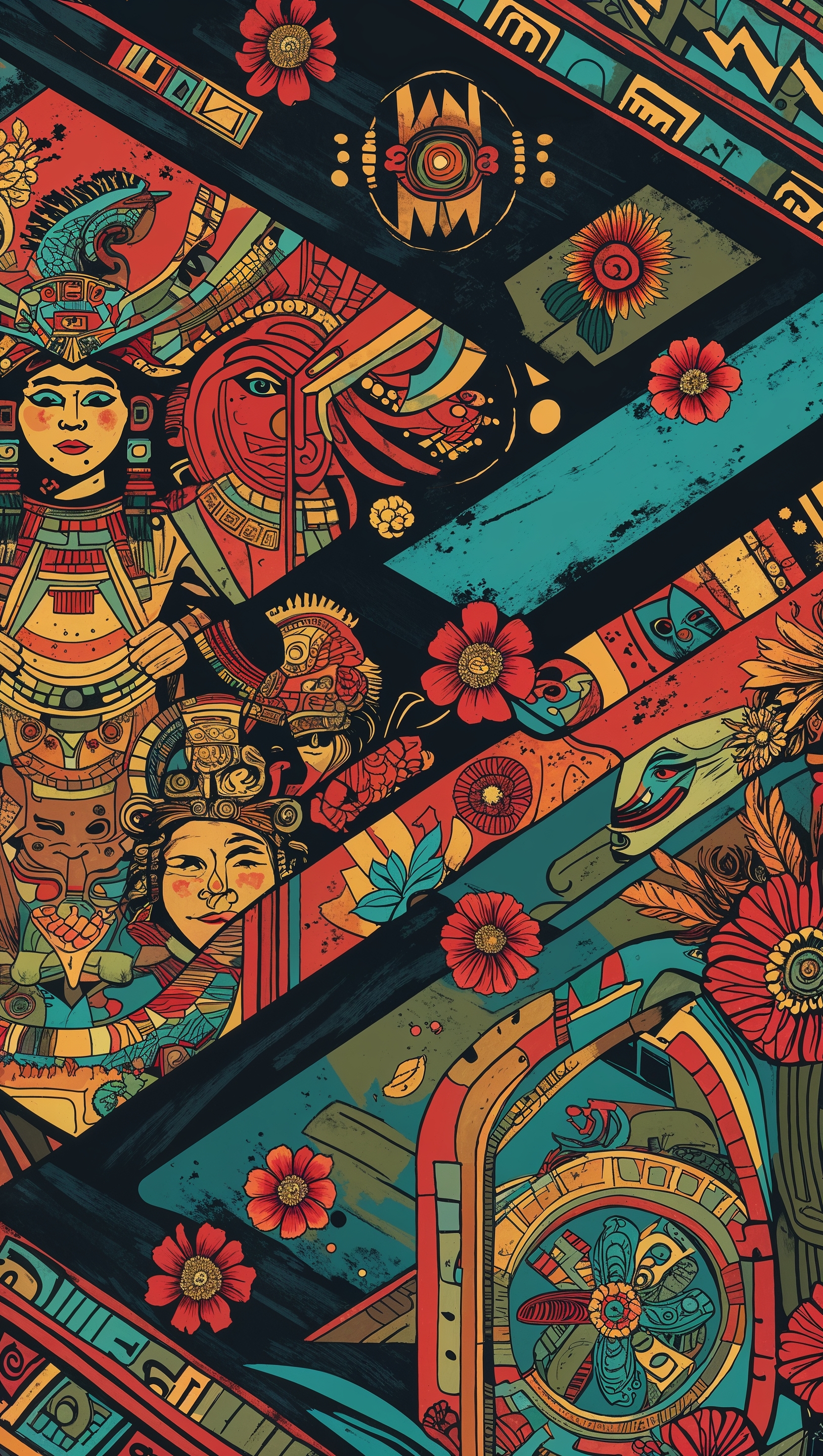 Wallpaper combining Aztec art with modern neon colors for iPhone 1664x2944 Wallpaper combining Aztec art with modern neon colors for iPhone