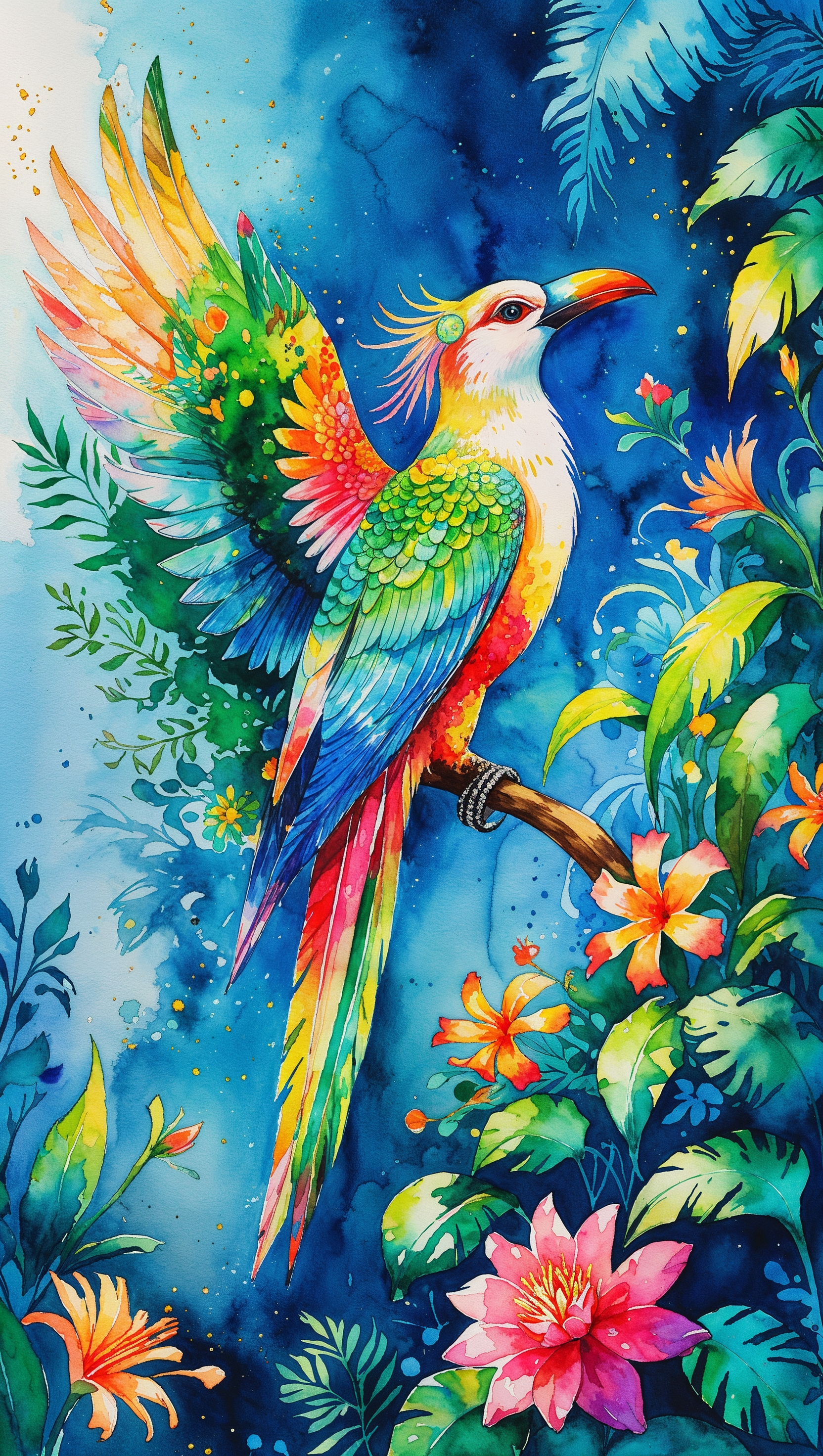 Watercolor illustration of Aztec myths as iPhone wallpaper 1664x2944 Watercolor illustration of Aztec myths as iPhone wallpaper