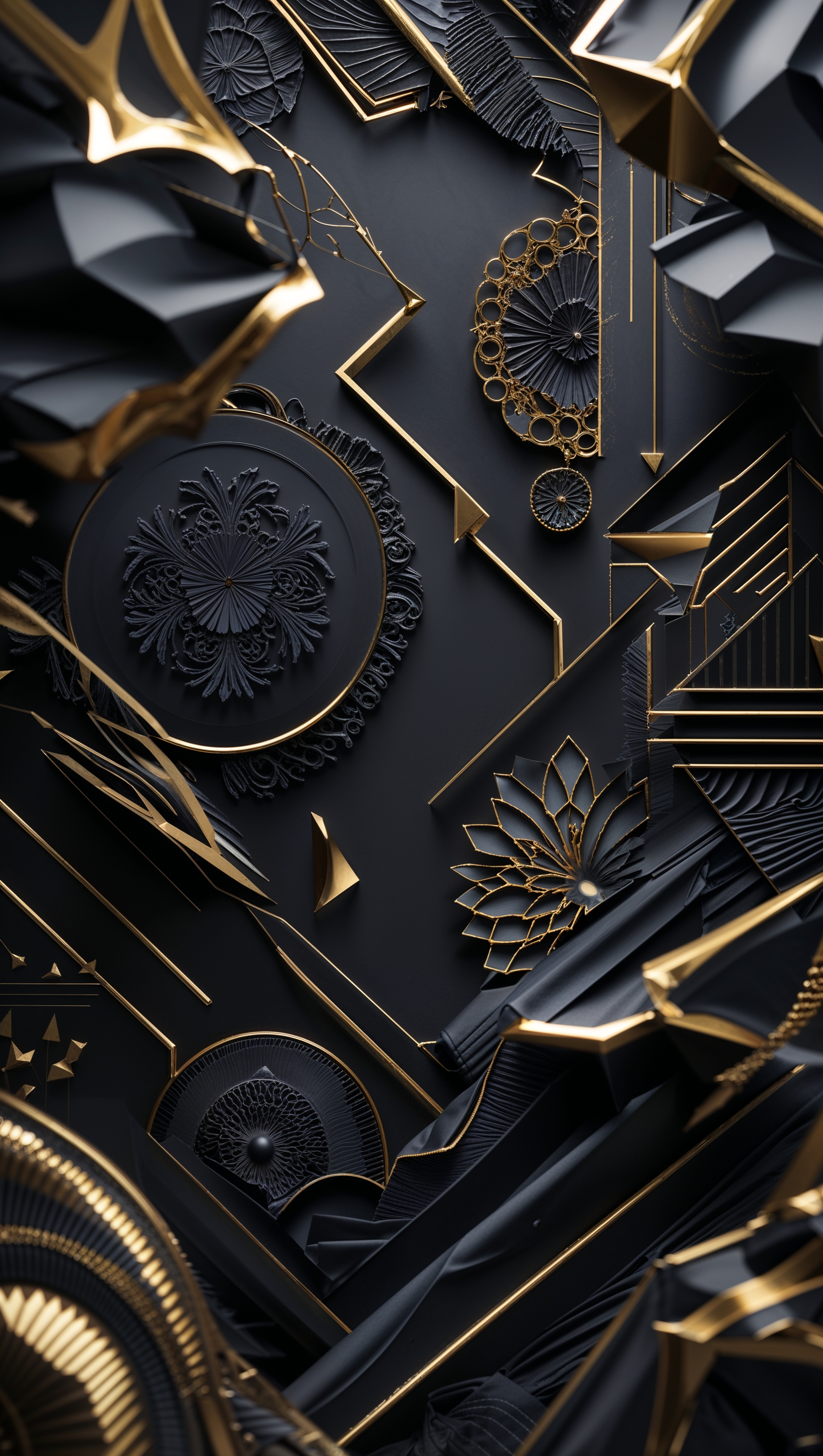 1664x2944 Design a black and gold wallpaper with modern and intricate designs