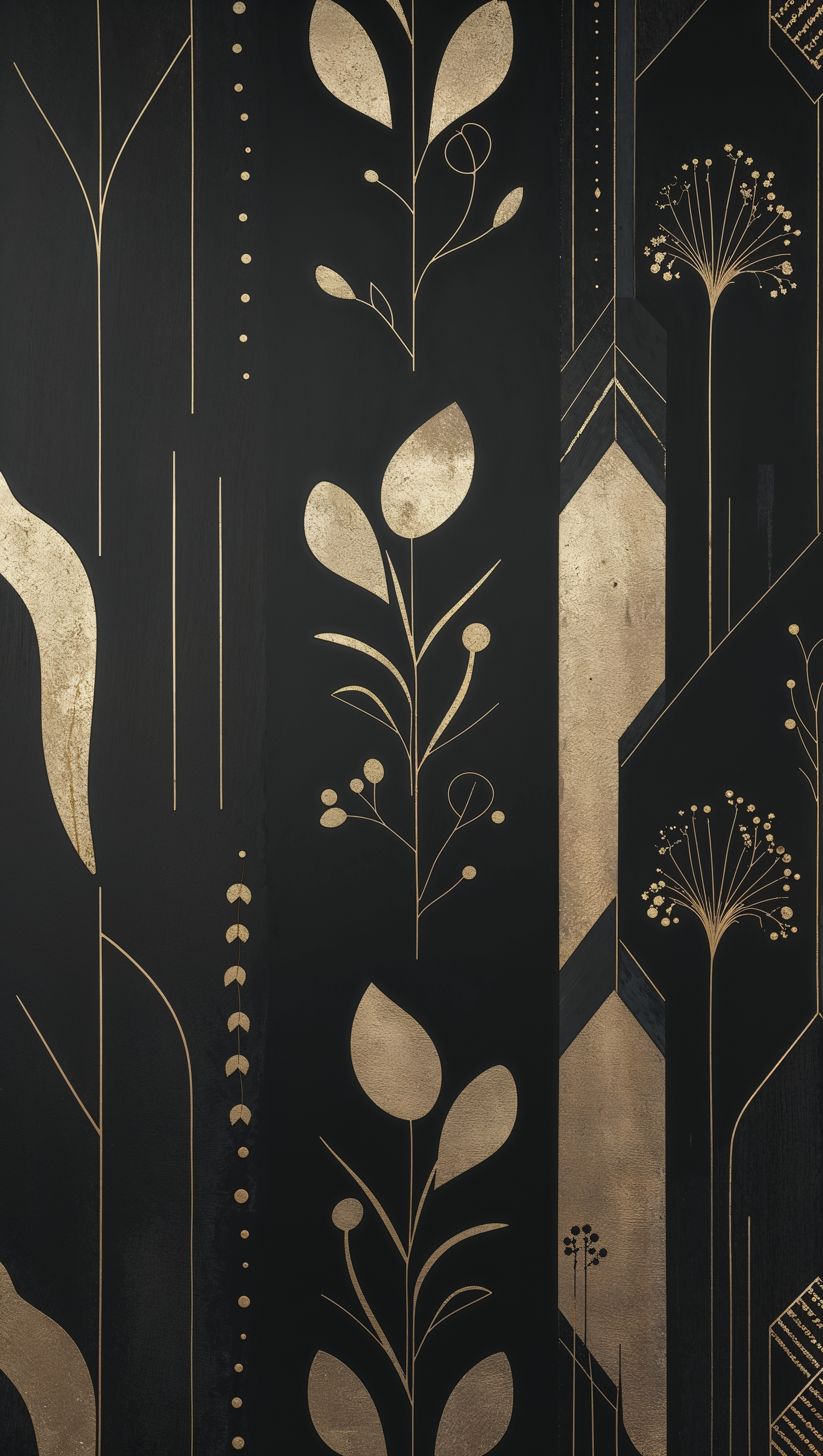 1664x2944 Create a black and gold wallpaper with contemporary art designs