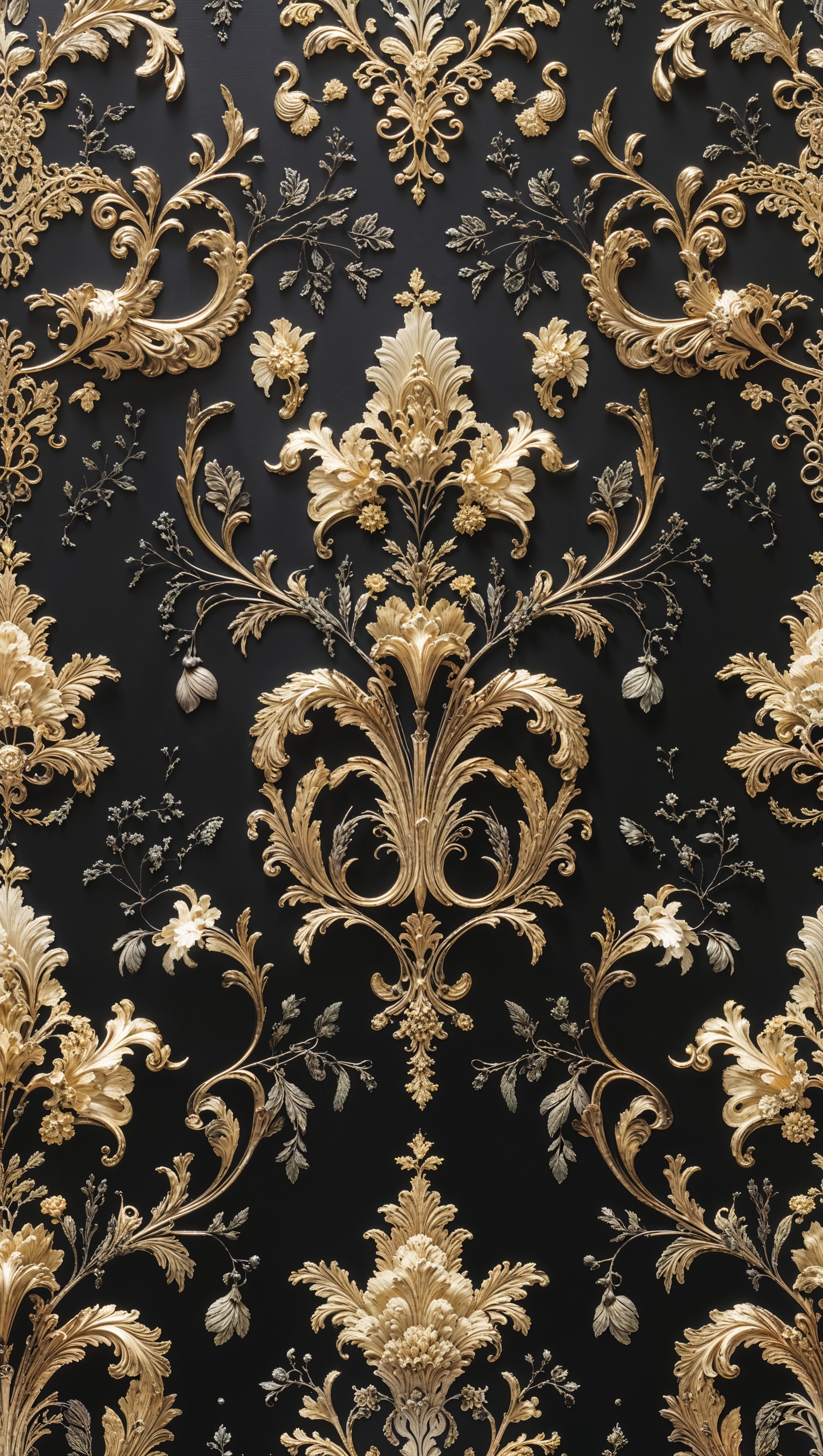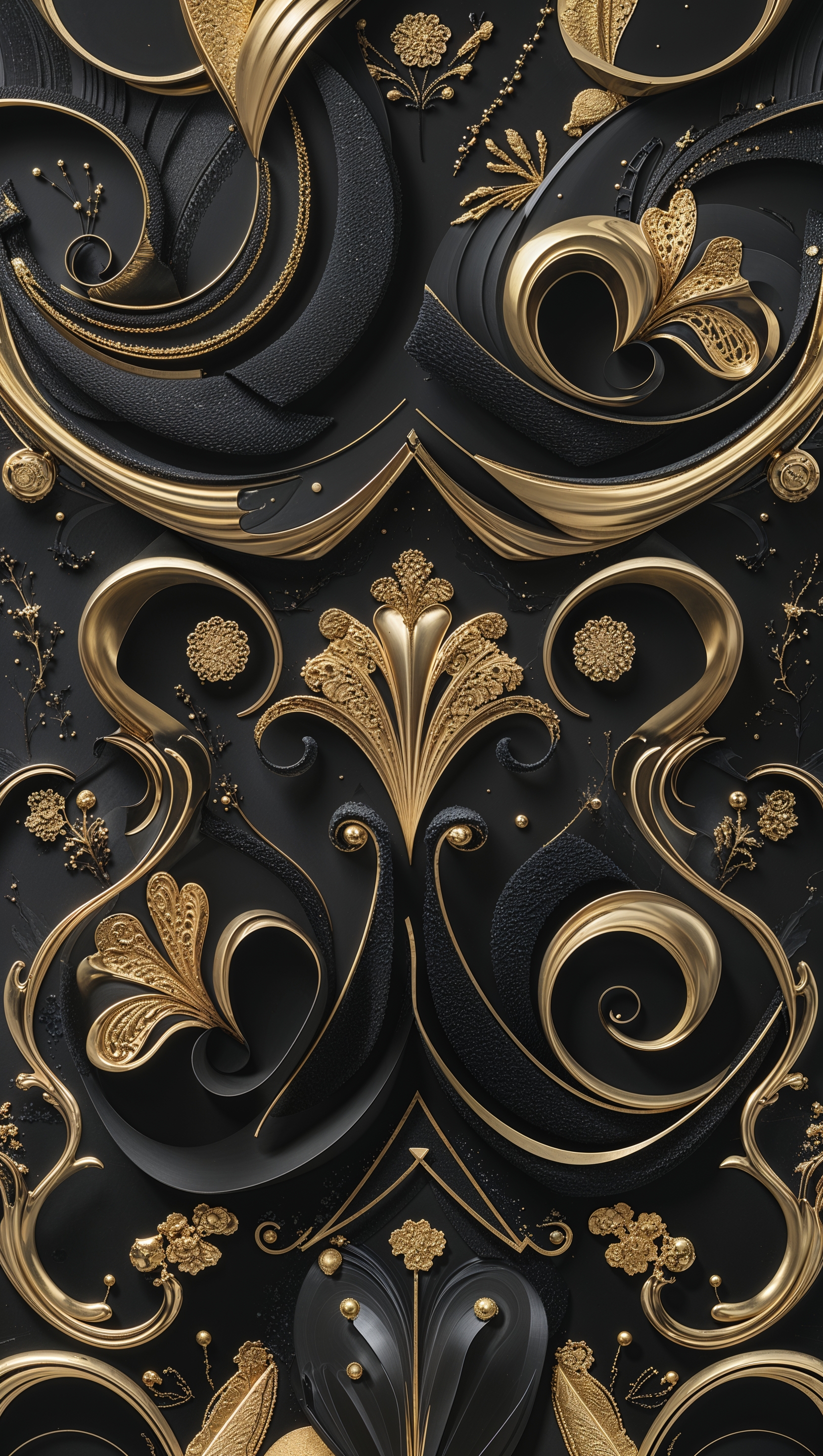 1664x2944 Create a black and gold wallpaper with elegant floral patterns